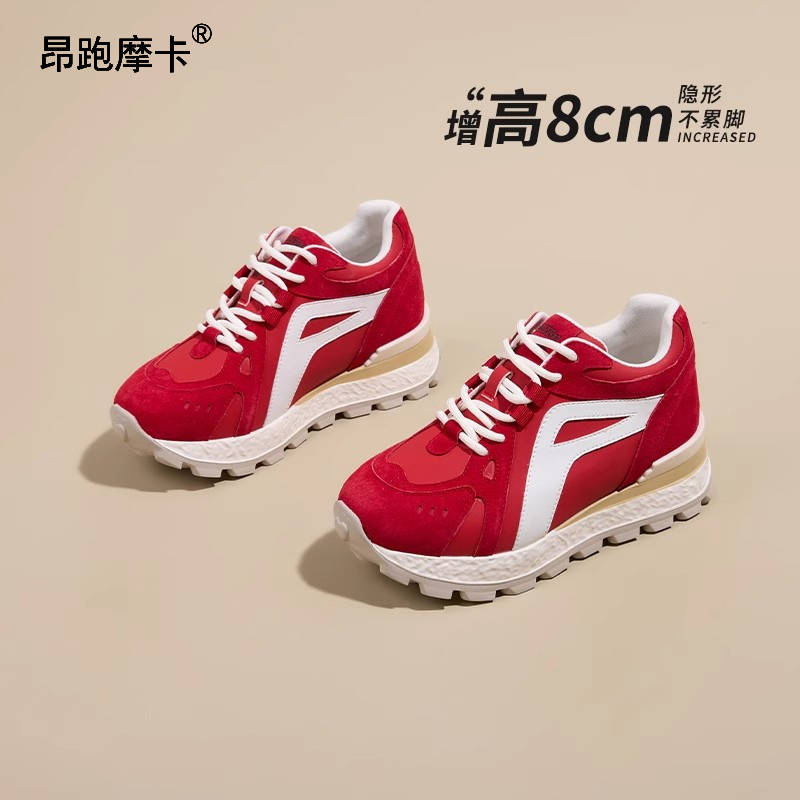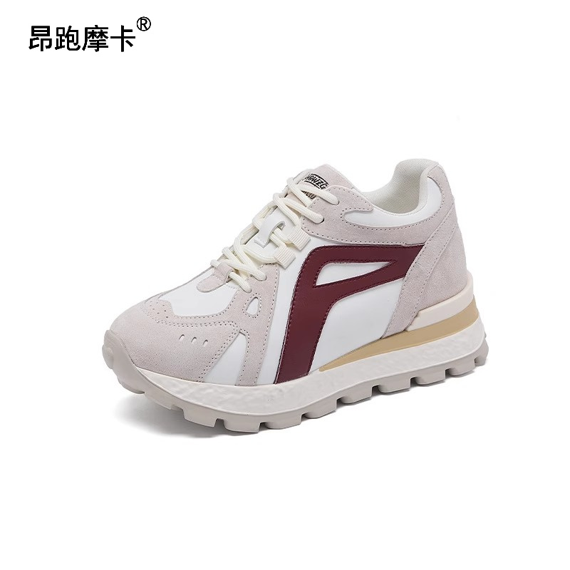 女款 休闲运动鞋 2025秋季 棕色内增高设计感小众时尚 新款 人本德训鞋