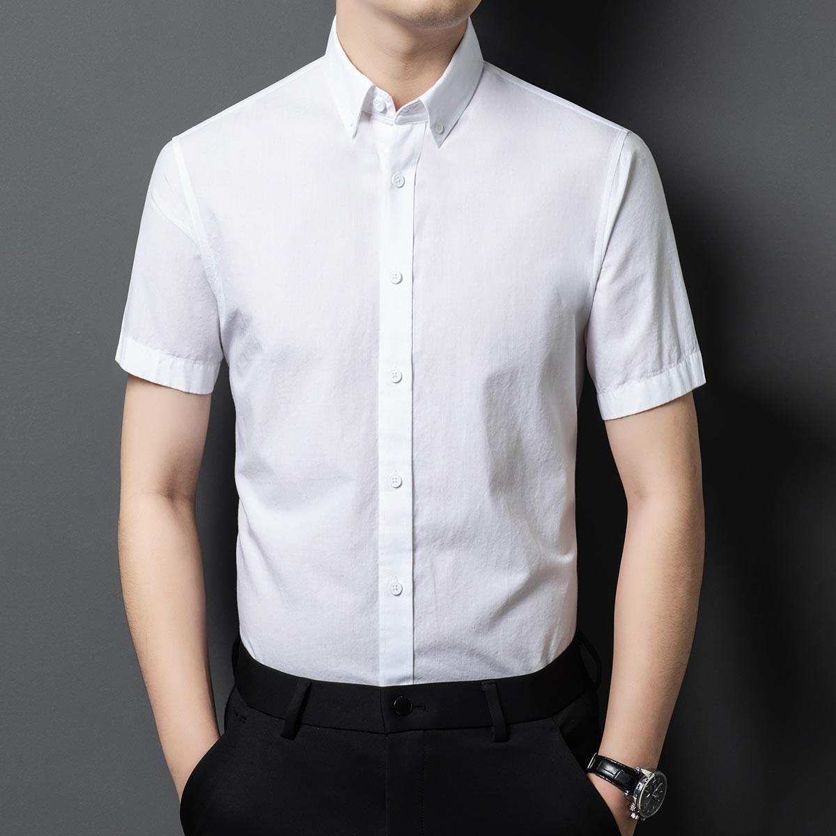 结婚伴郎衬衣面试正装 白衬衫 免烫商务定制团购职业修身 夏季 男短袖