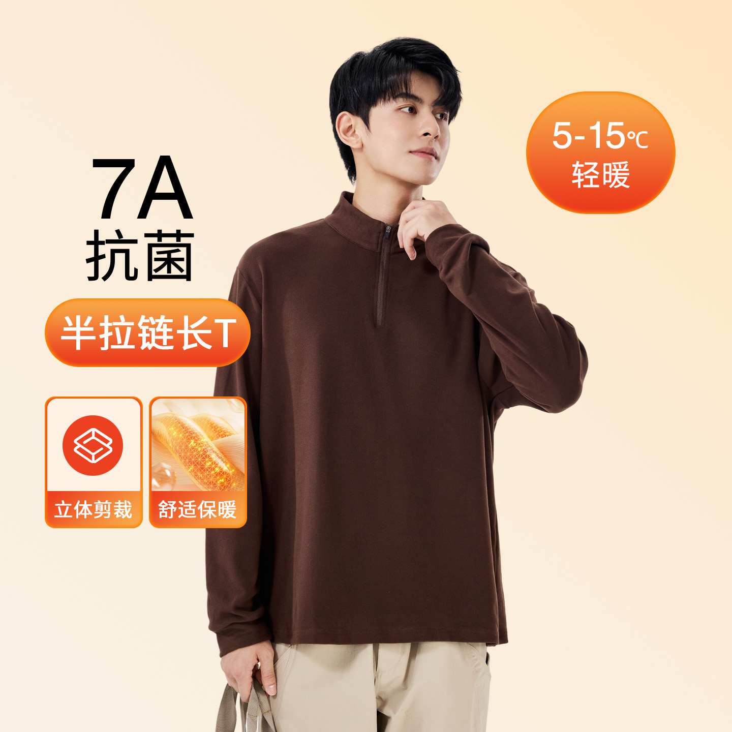 双面磨绒抗菌保暖打底衫 冬季 秋衣 t恤男款 班尼路S&K系列半拉链长袖