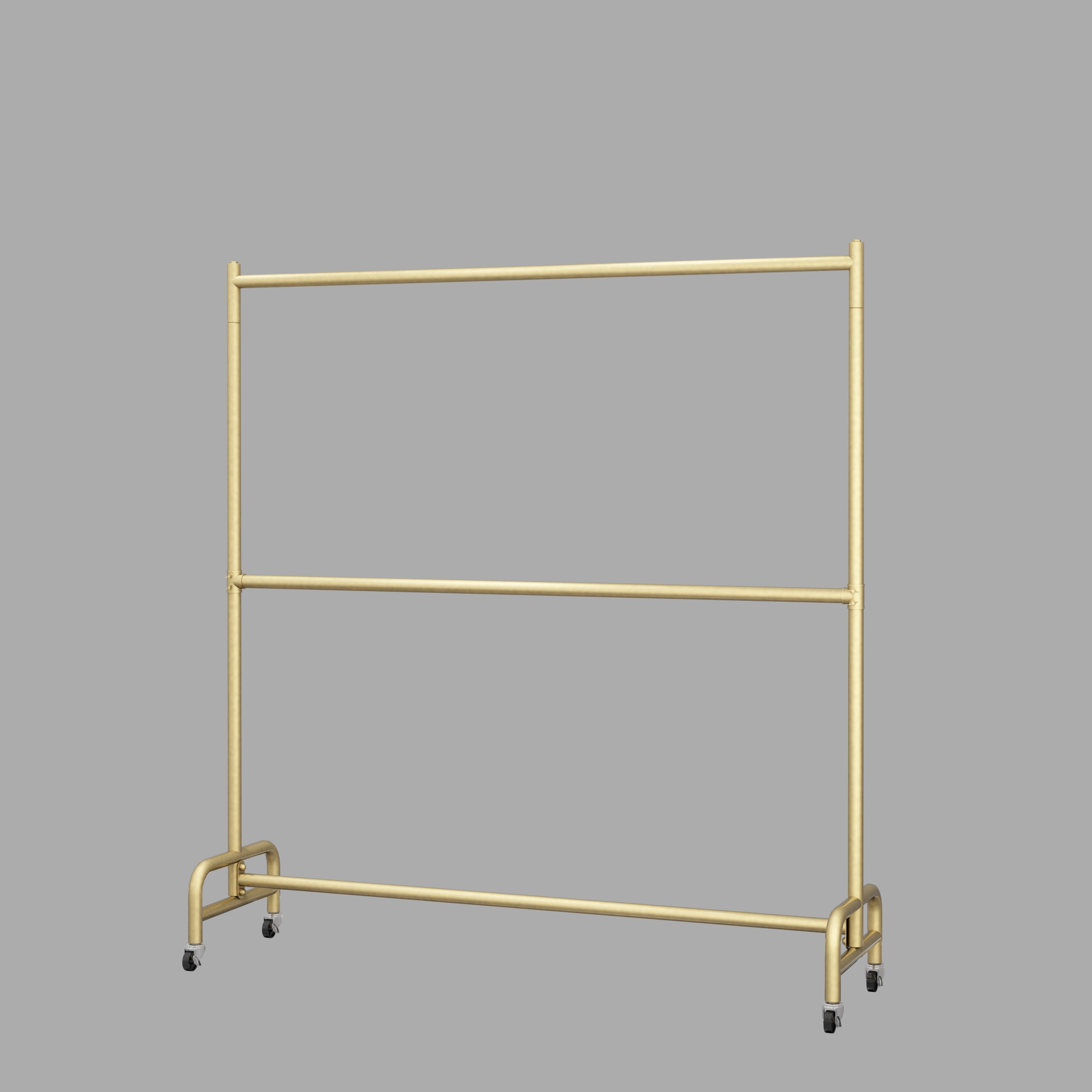 双杆式 衣帽架置地卧室阳台简易晾晒衣架双层挂衣杆升降收纳架带轮