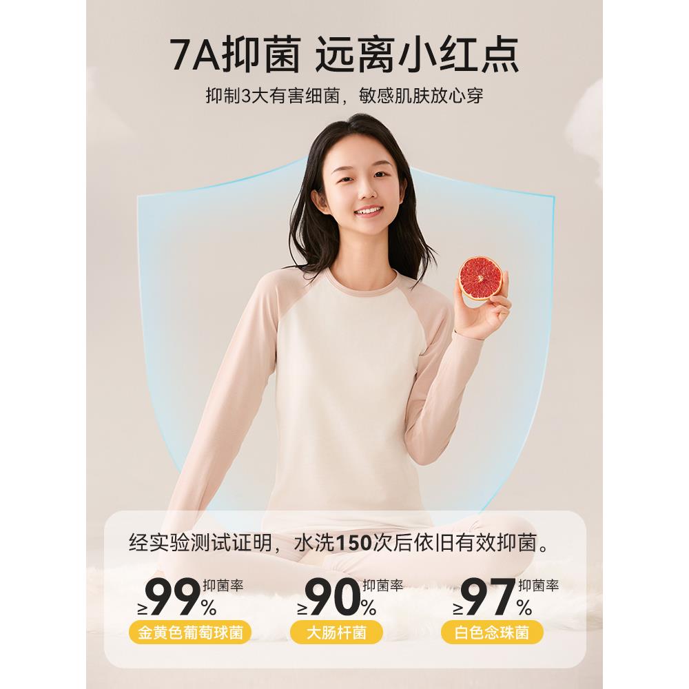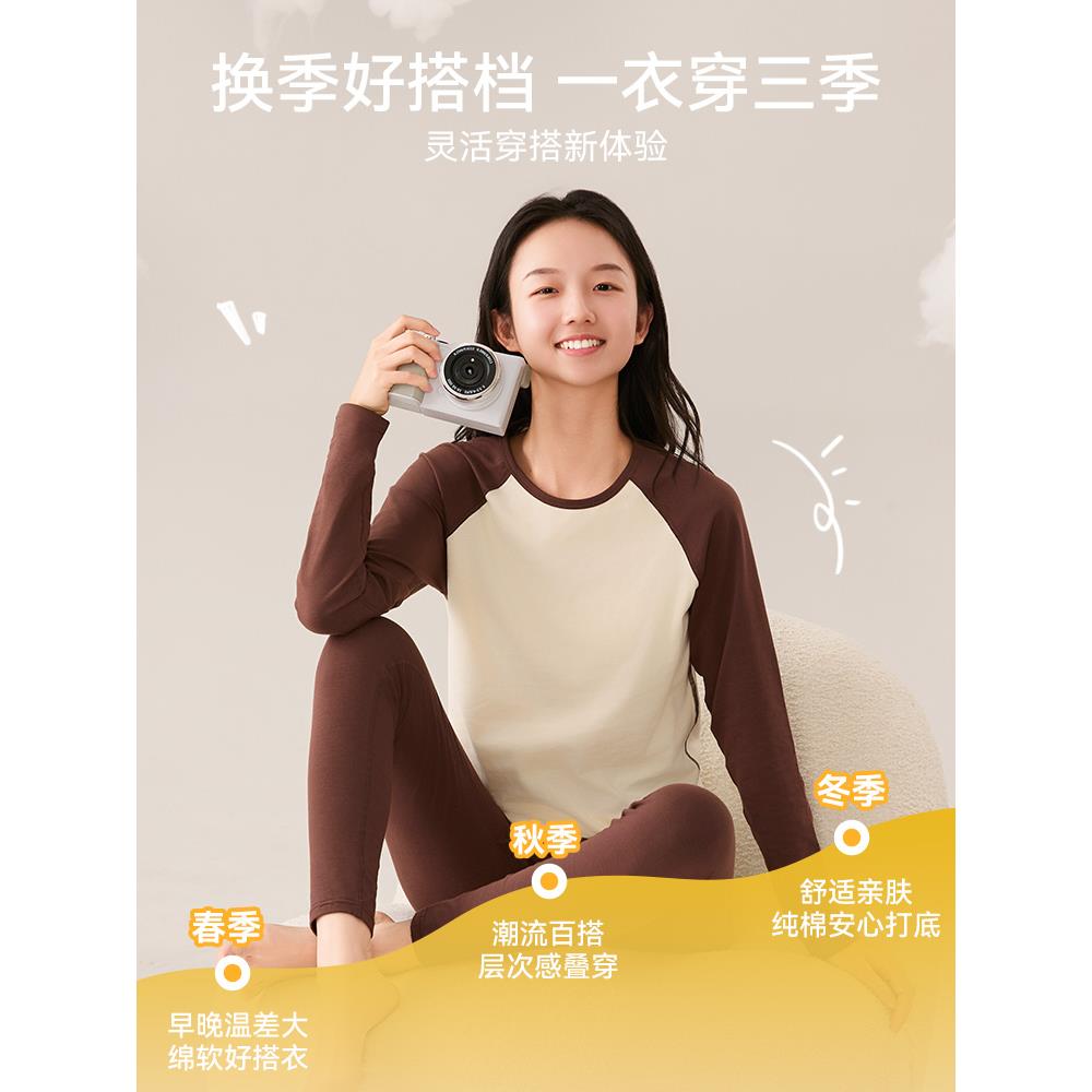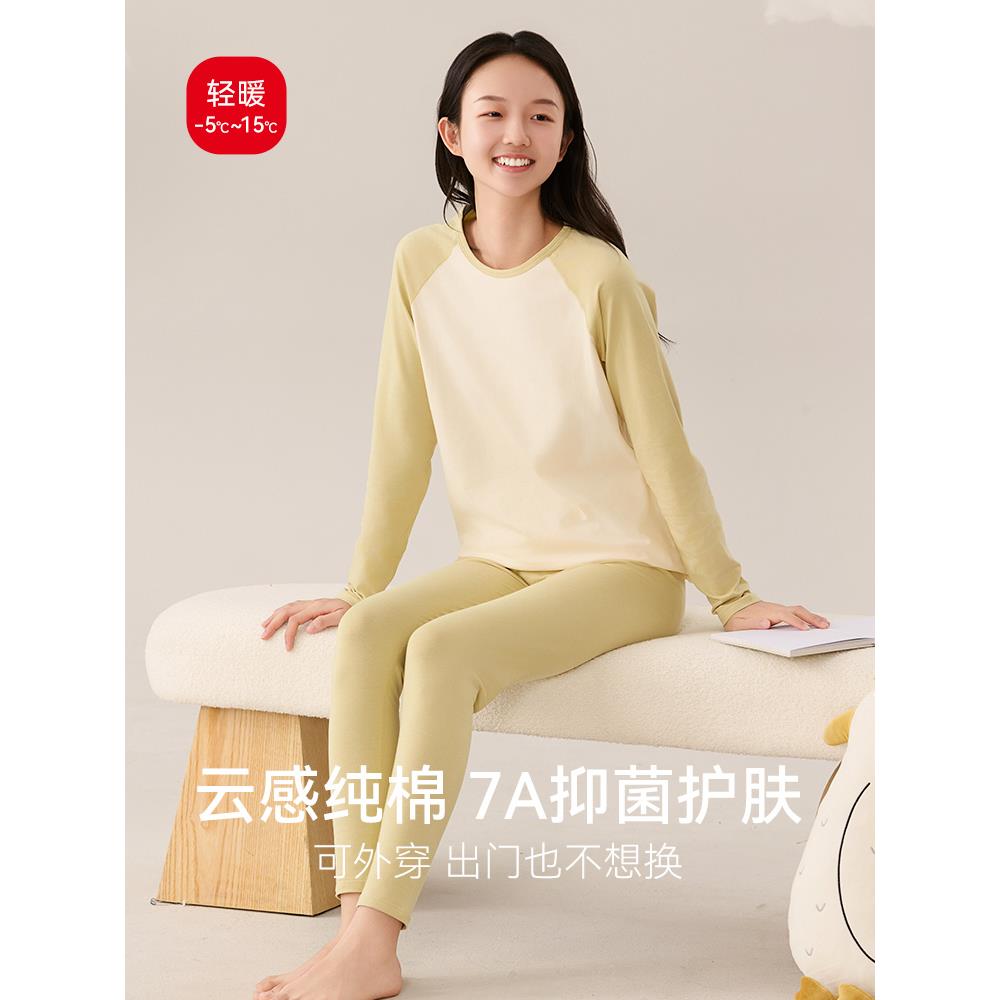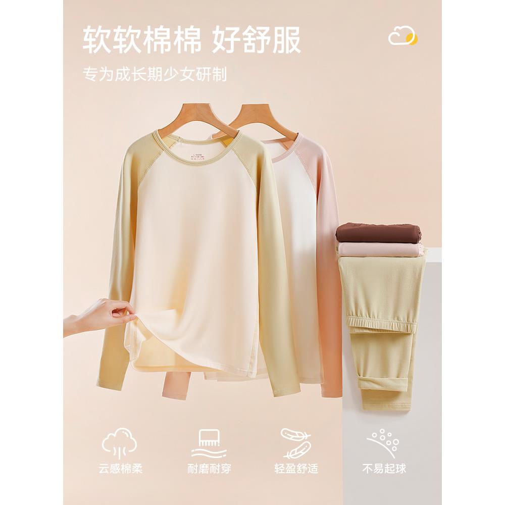 2024 青少年保暖内衣女大童纯棉毛衫 初中高中学生少女秋衣秋裤 套装