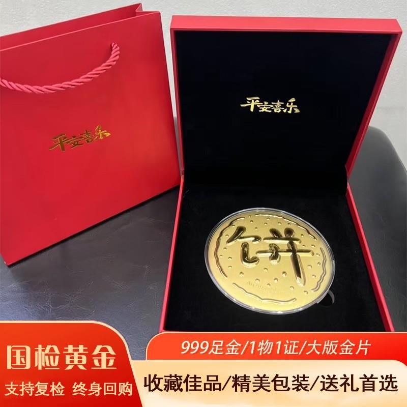 金大饼1克显大送礼收藏摆件生日报礼物送女朋友男友 华鑫官方