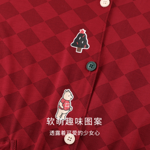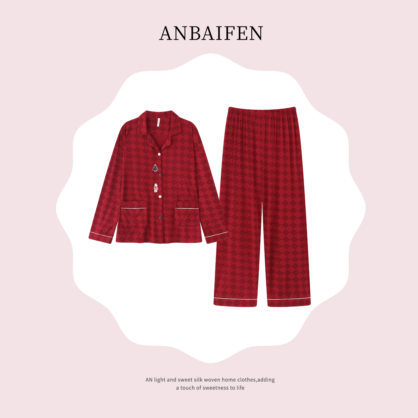红色本命年高级感家居服套装 2025新款 长裤 长袖 女 情侣睡衣女春秋款