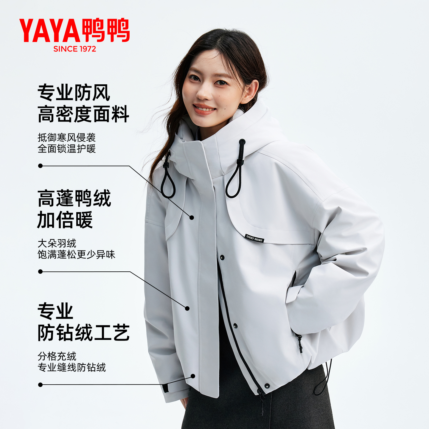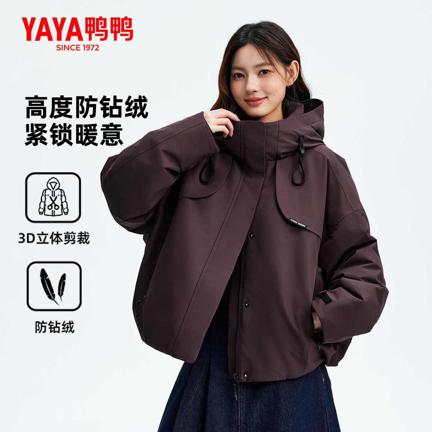心派系列 新时尚 羽绒服女款 2025年冬季 潮流90鸭绒连帽外套 短款