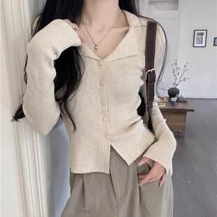 显瘦打底衫 女甜辣毛衣感修身 上衣外搭1013c 针织V领开衫 冬季