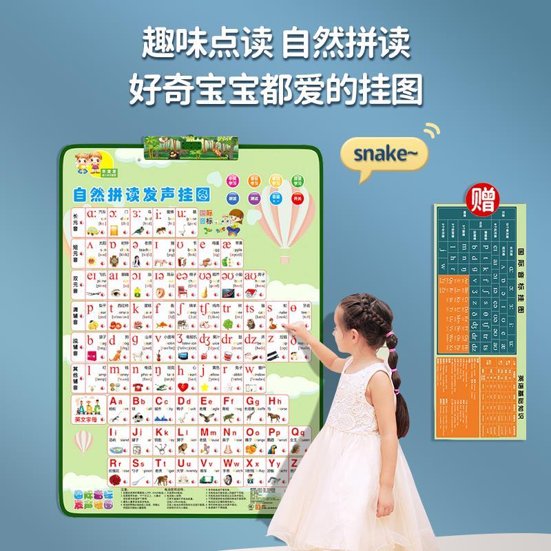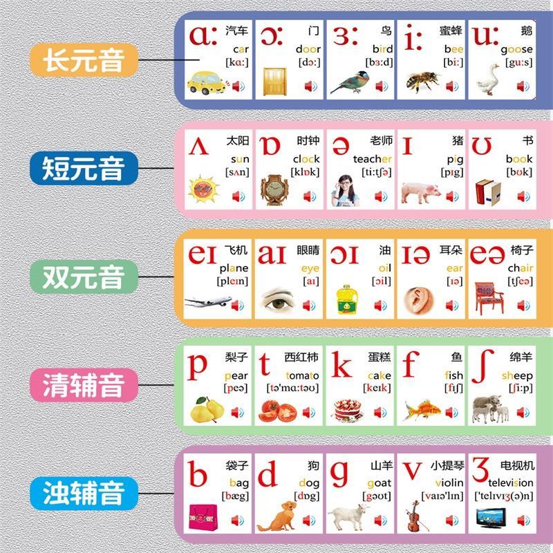 国际英语音标和自然拼读有声挂图趣味学48个入门教材发音字母墙贴