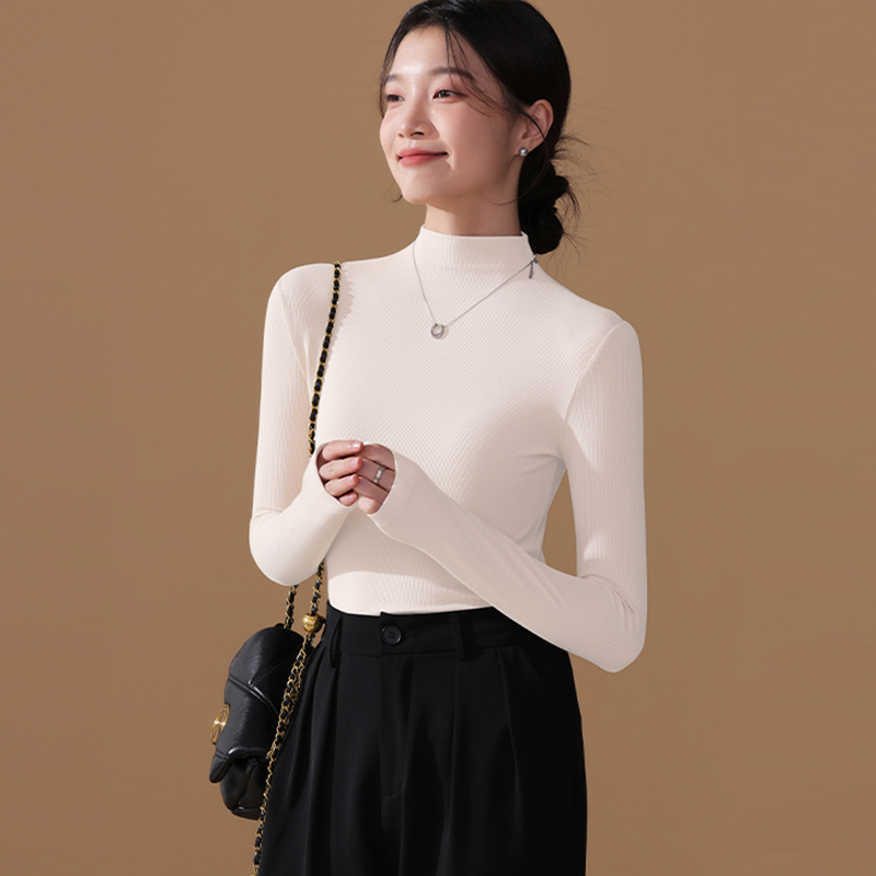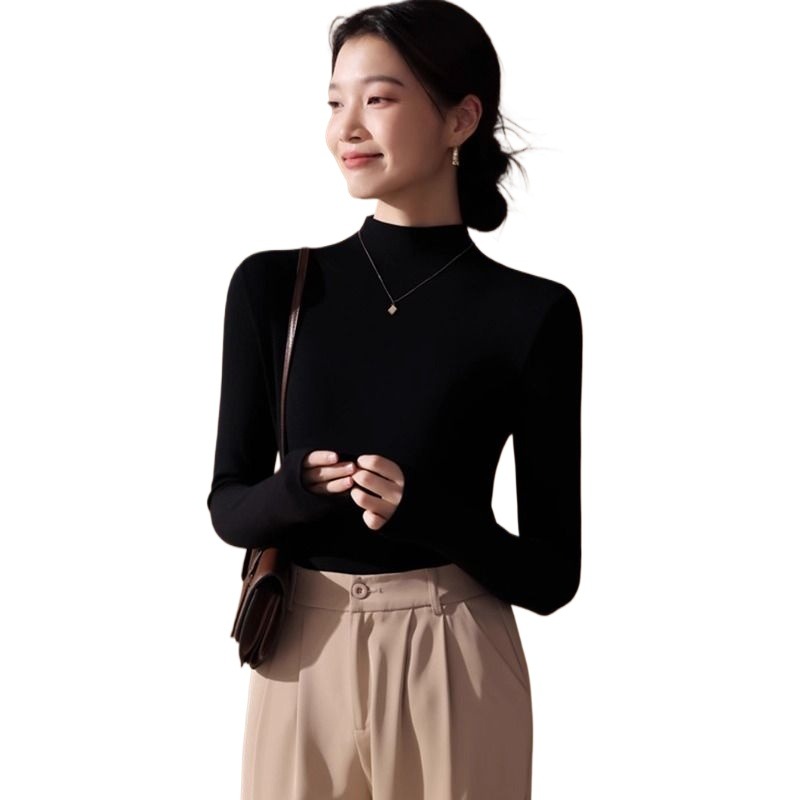 长袖 内搭洋气修身 高级感加厚黑色上衣 女2025秋冬新款 半高领打底衫
