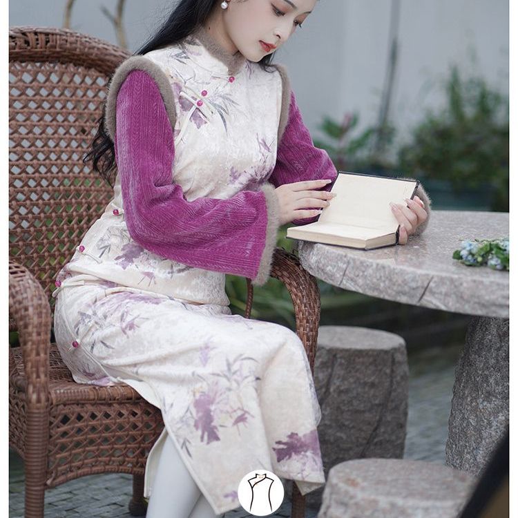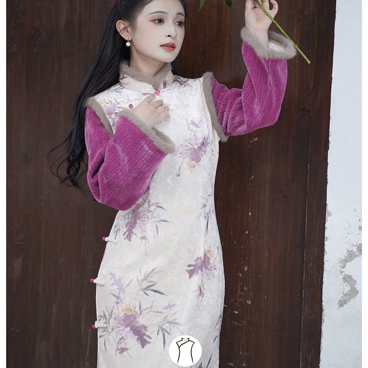 国风女装 绿色丝绒旗袍连衣裙女2025年秋冬新款 年会礼服裙子新中式