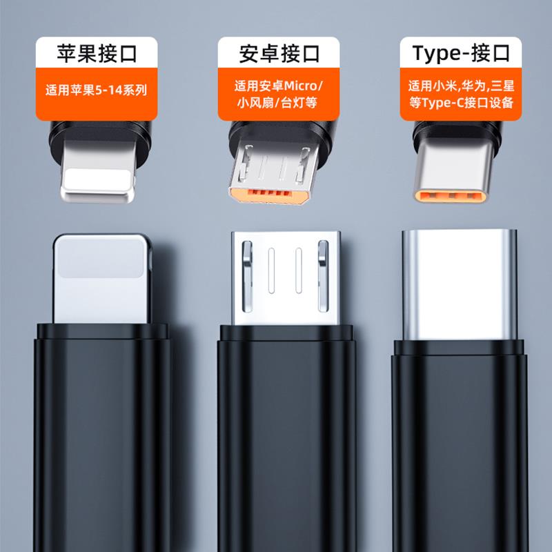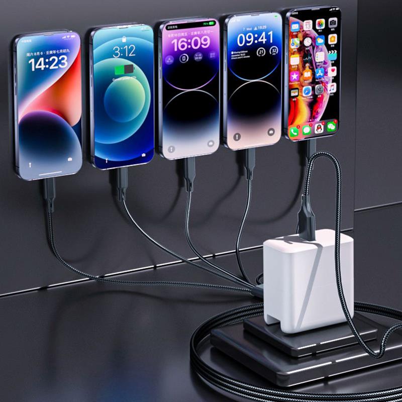 C苹果5个安卓充电线器USB多头一拖五多功能三合一车载双头适用1拖5 适用于iphone手机数据线type 德国品质