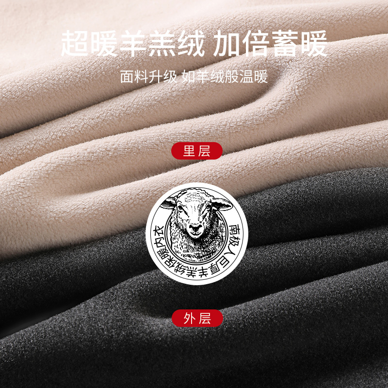 秋衣秋裤 雅鹿东北保暖内衣男士 羊羔绒抗寒打底衫 套装 加绒加厚冬季
