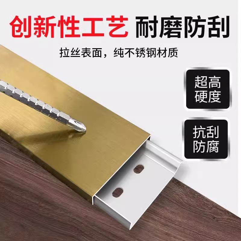 6cm黑钛拉丝贴脚线 线加厚金属4 不锈钢踢脚板卡扣式 免基层墙角线