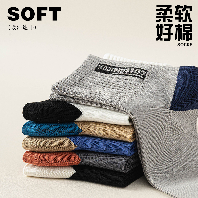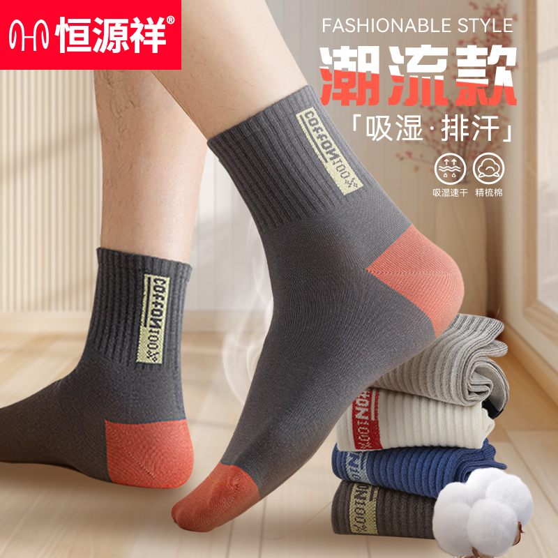 抗菌防臭吸汗运动潮流新疆棉 中筒袜男士 恒源祥纯棉袜子男款 秋冬季