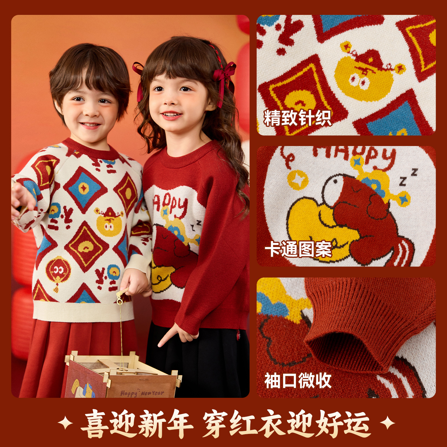 针织长袖 宝宝毛衣男童女童卡通衣服儿童冬季 上新 上衣 国风年装