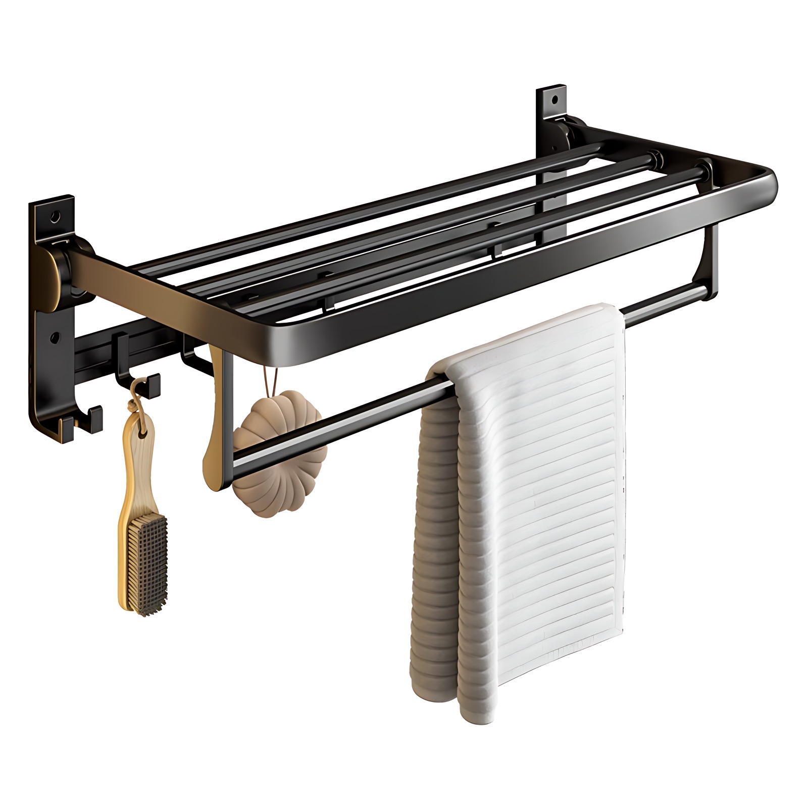 毛巾架免打孔卫生间壁挂浴巾架黑色厕所挂件套装 太空铝浴室置物架