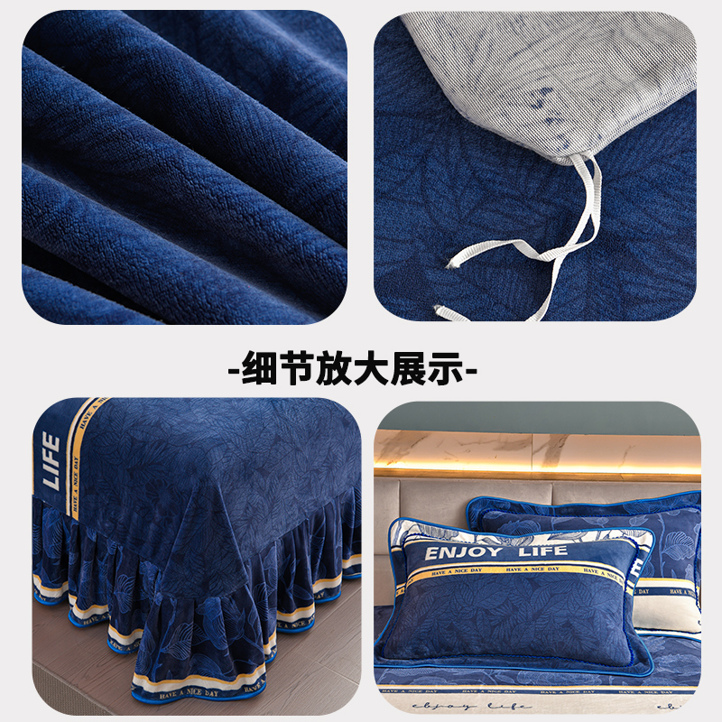 金貂绒牛奶绒床上四件套双面珊瑚绒加厚床裙款 被套花边床单冬季