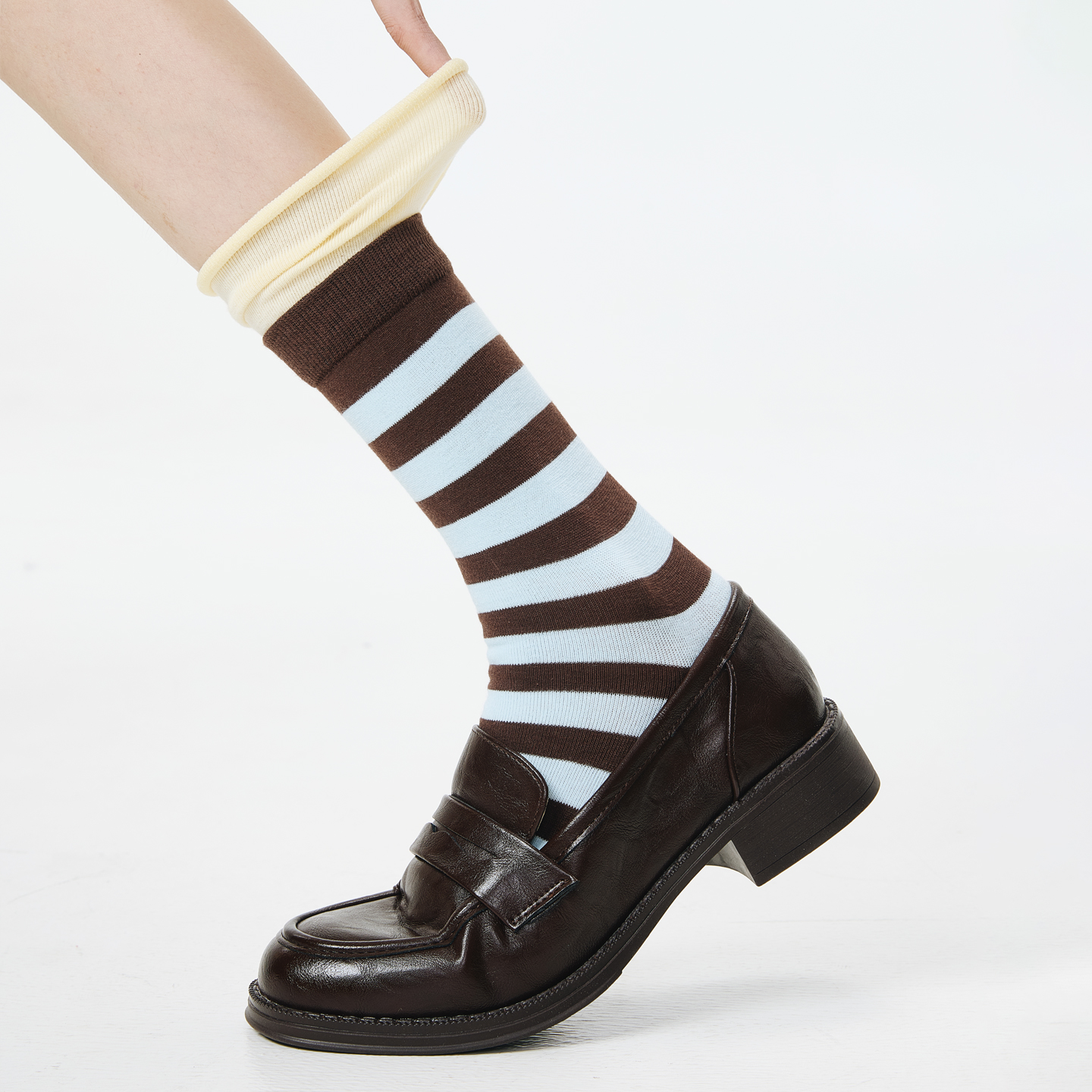长筒ins潮 爆款 条纹袜子女撞色中筒堆堆袜春秋款 松口卷边2025新款