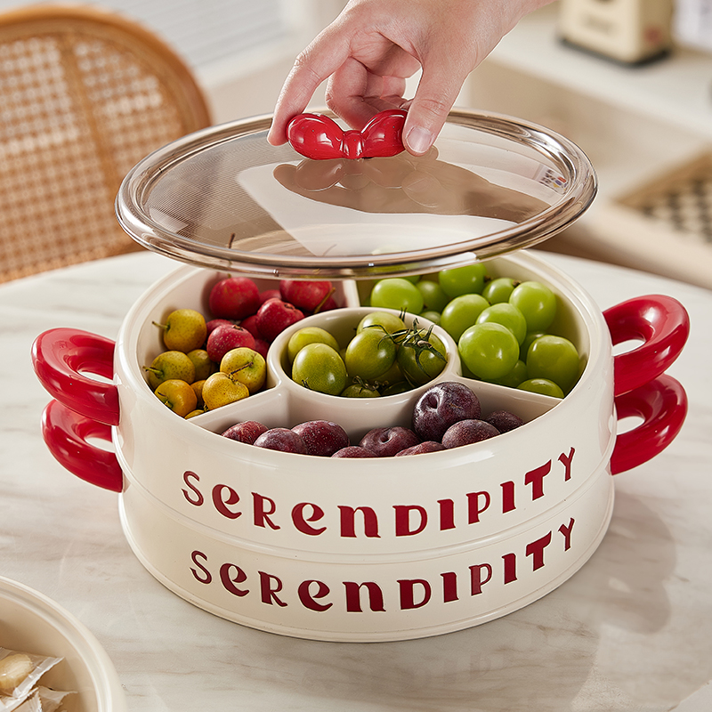 水果盘客厅茶几家用沥水篮双层带提手高颜值果盘零食盘干果收纳盒