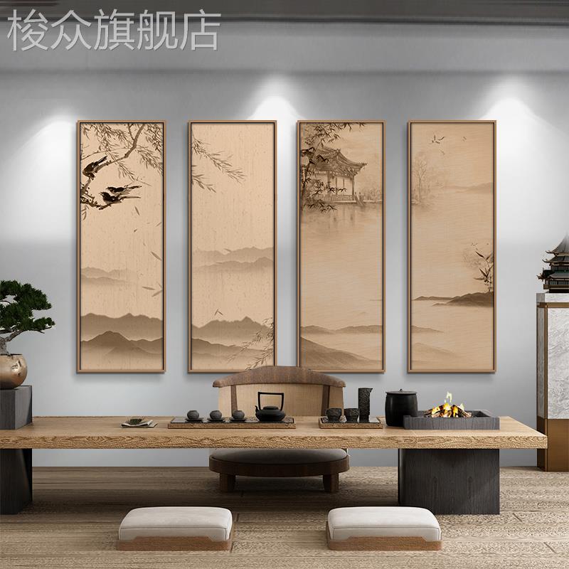 中式 饰画 山水人物挂画国风禅意国画书房玄关壁画客厅茶室背景墙装