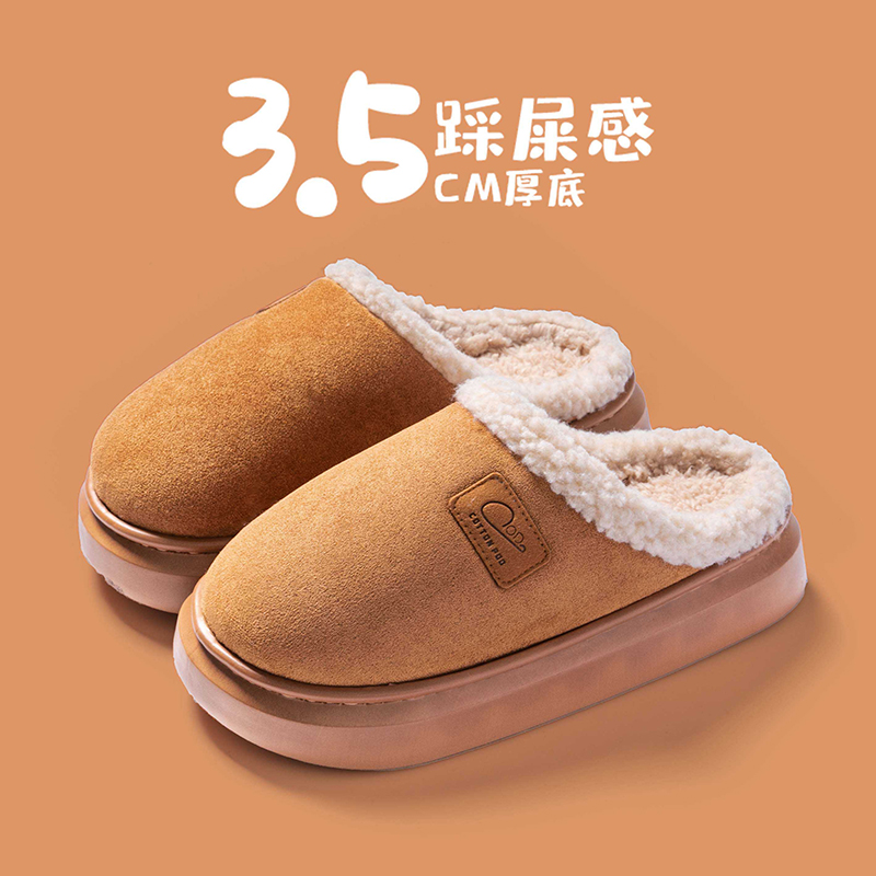 室内居家厚底情侣拖鞋 新款 男冬毛绒保暖轻便防水 女秋冬季 绒棉拖鞋