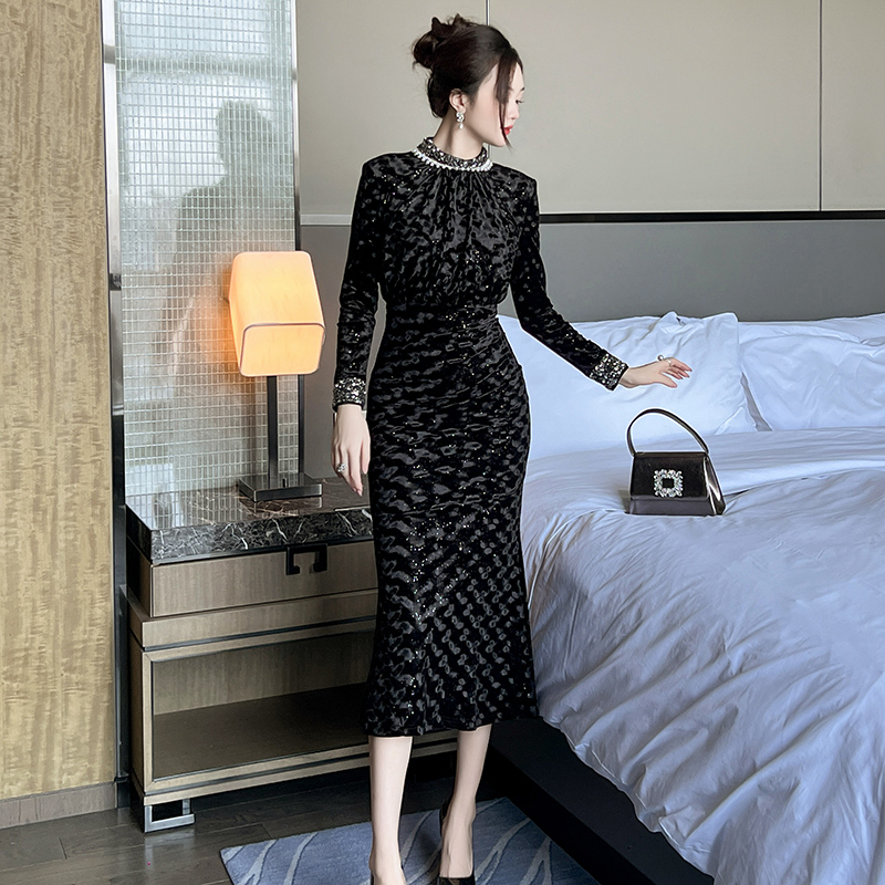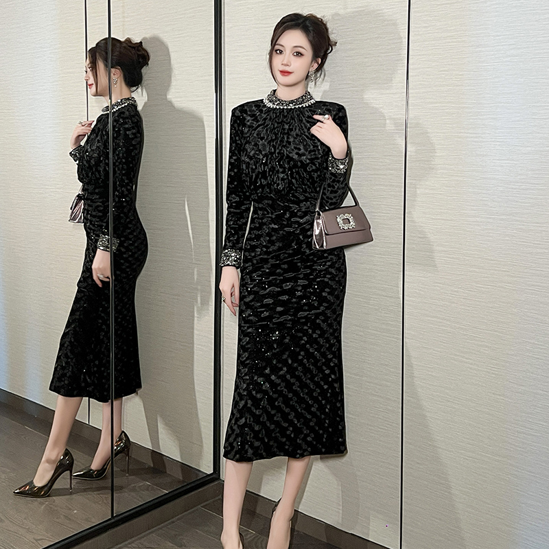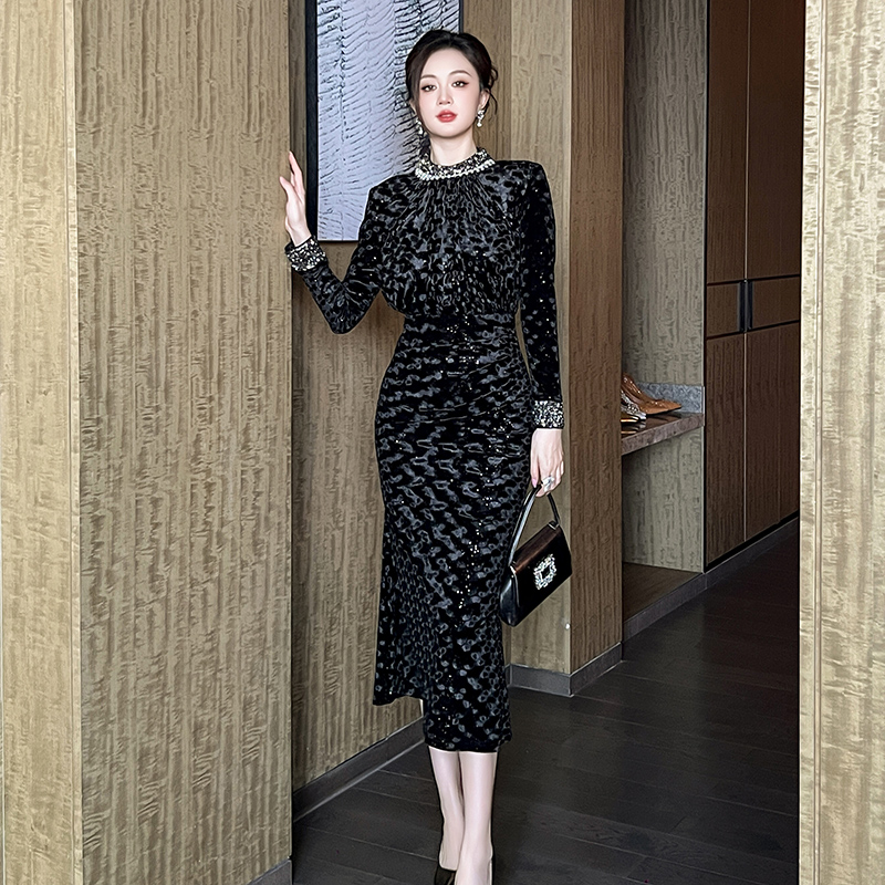 场合裙子气质小黑裙女秋冬 正式 黑色收腰连衣裙高级感2025秋季 新款