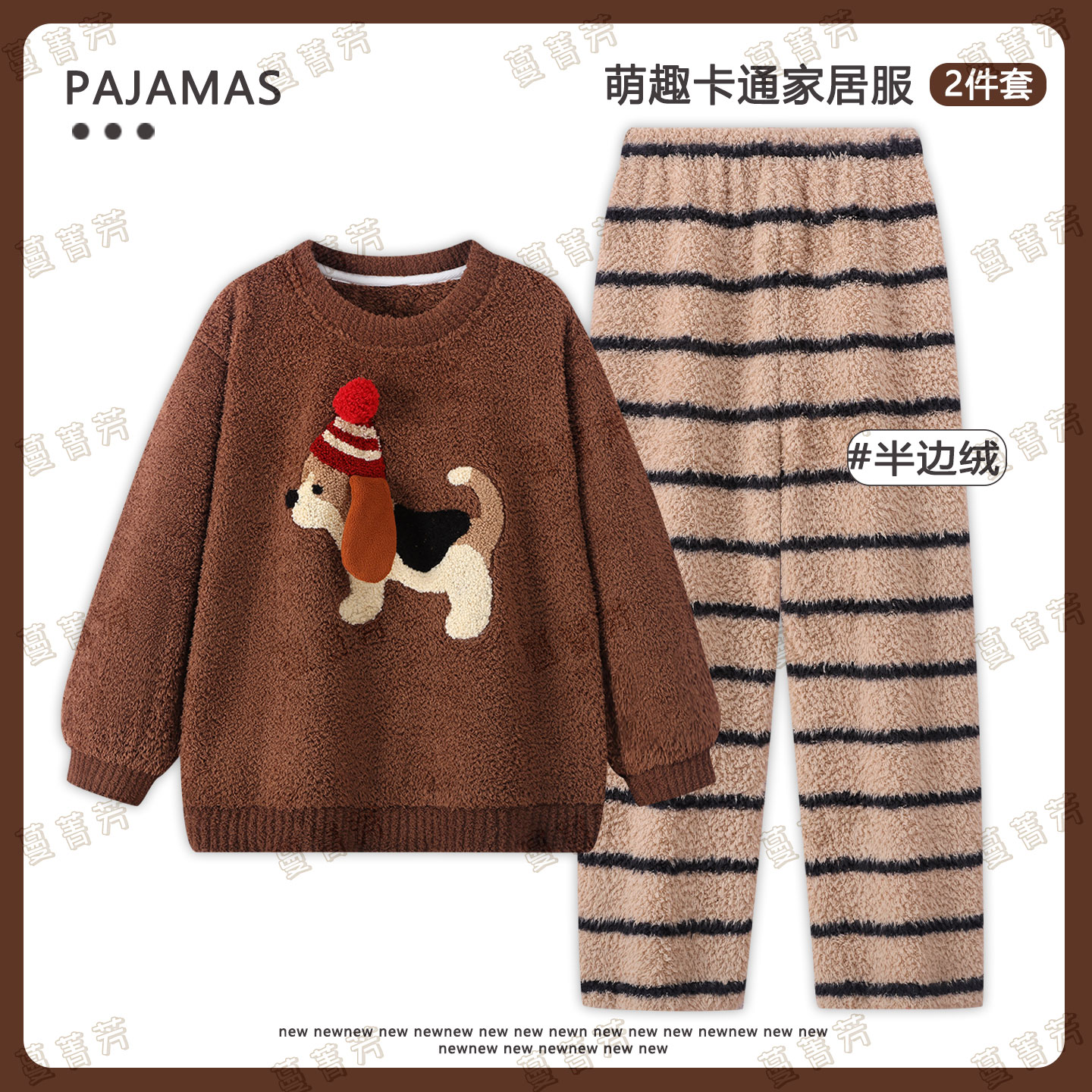 海岛绒家居服套装 加绒加厚保暖珊瑚绒2025新款 睡衣秋冬季 轩靓男士