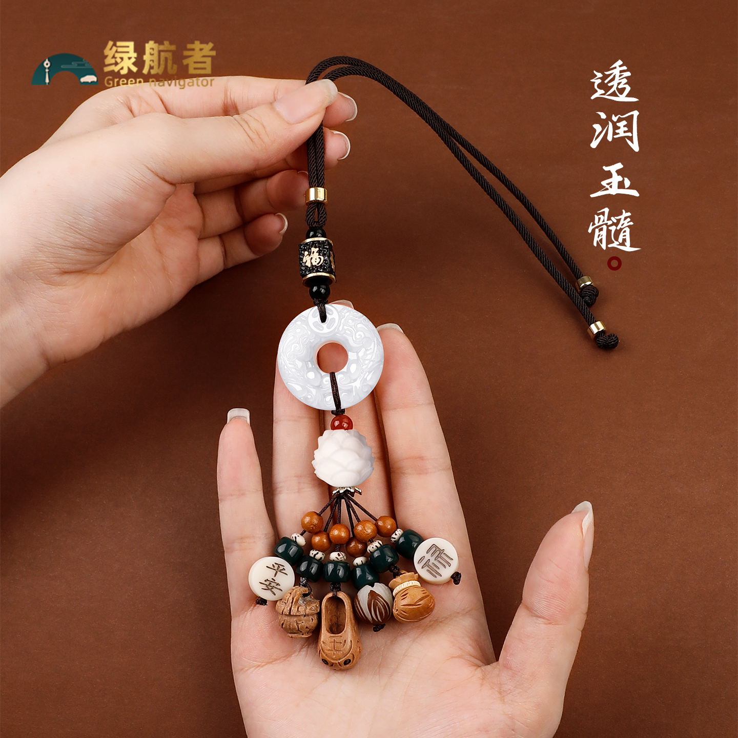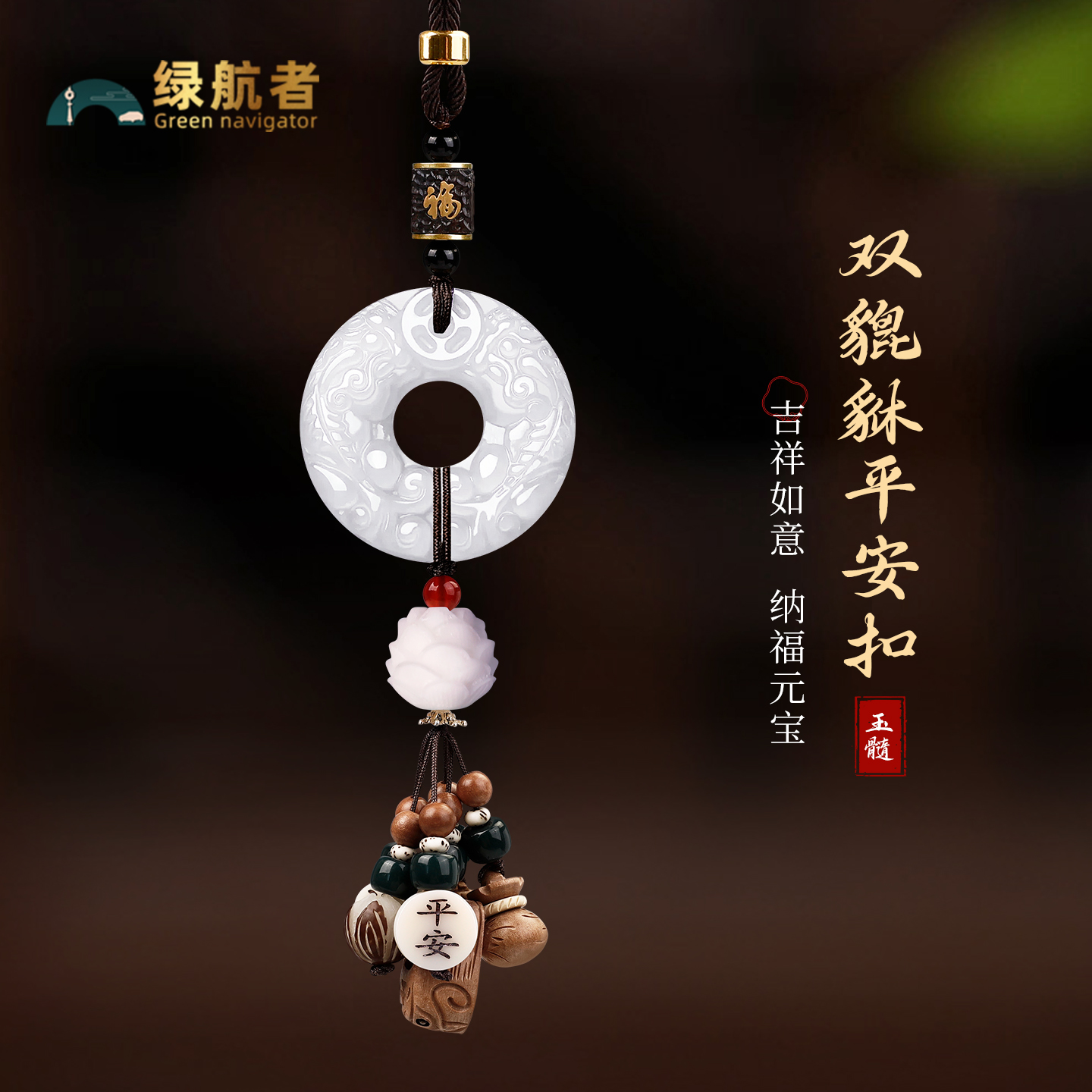 2025新款 女车载国风挂饰 白玉髓貔貅平安扣汽车挂件车内高级感男士