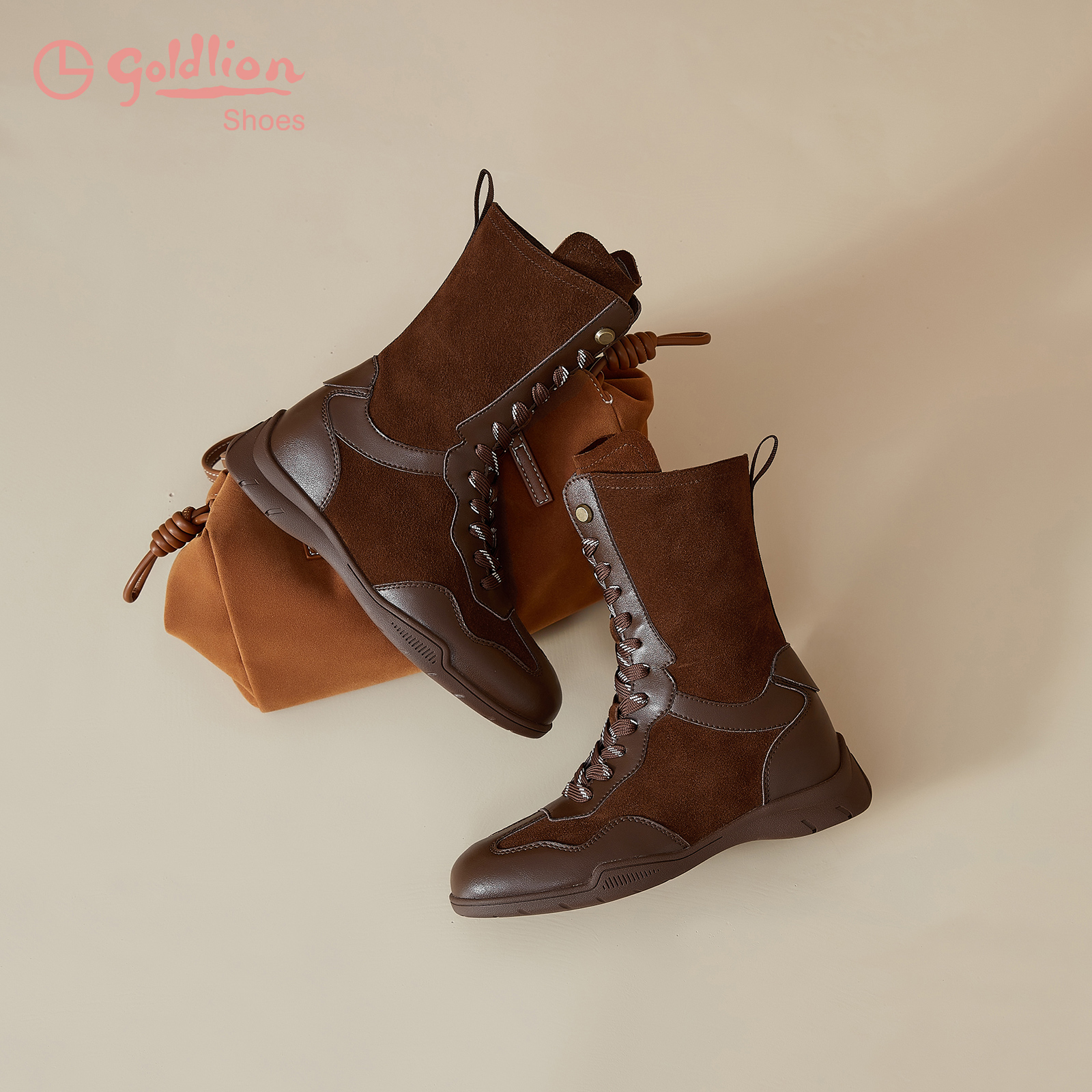 金利来女鞋 机车风拳击靴女黑色系带马丁靴百搭短靴女 2025秋冬新款