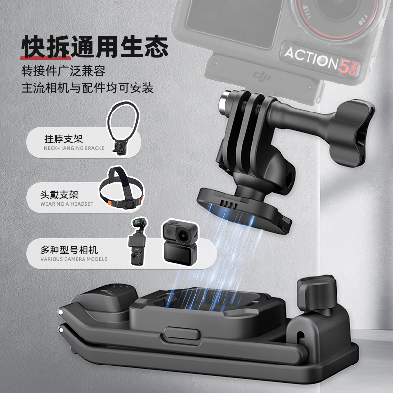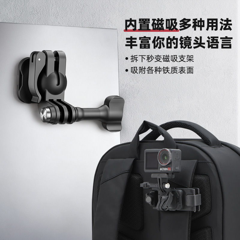 斯达飞适用于大疆Action5Pro 3磁吸背包夹书包支架肩带夹户外固定拍摄快拆直播第一人称视角运动相机配件