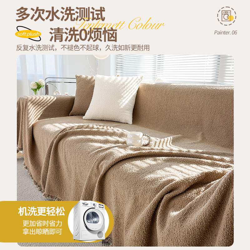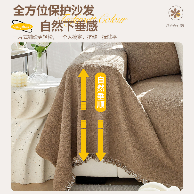 毛绒沙发盖布秋冬加厚防滑沙发巾轻奢高级感一片式 坐垫全包套罩毯