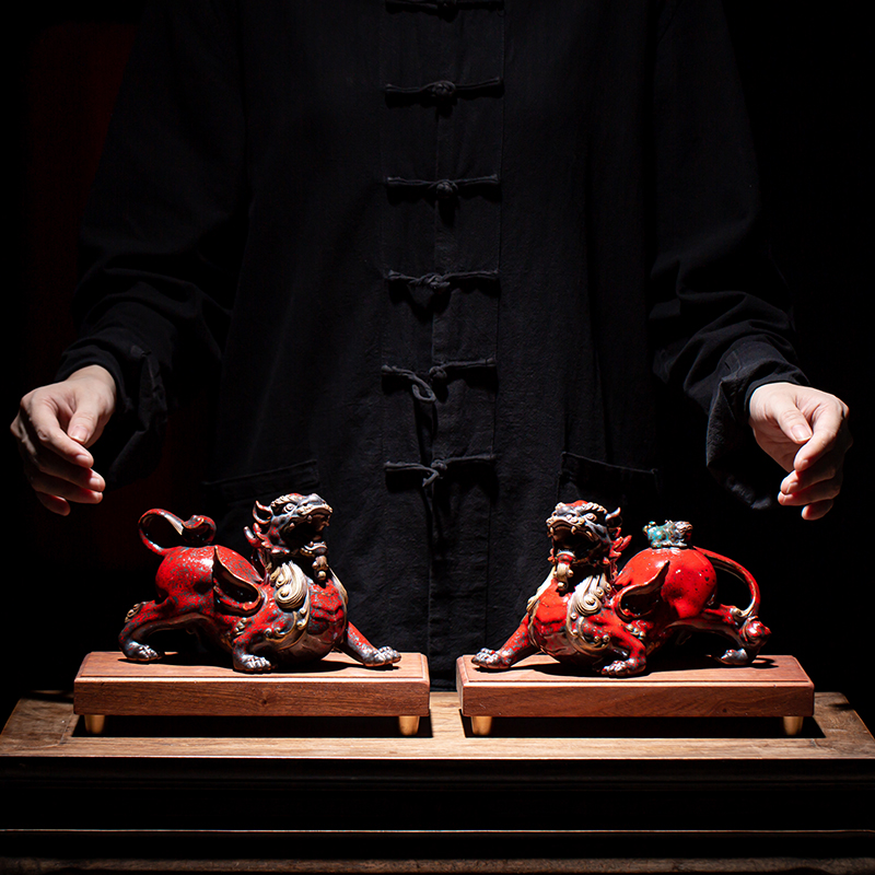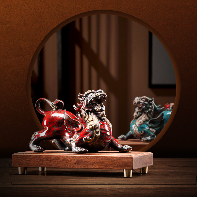 中式 饰工艺品礼品 陶瓷貔貅摆件红色家居客厅酒柜摆设办公室招财装