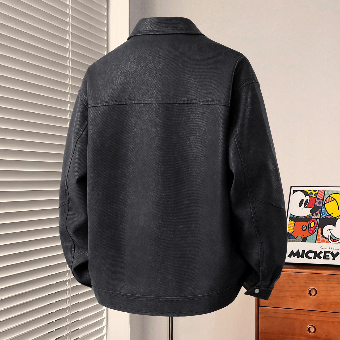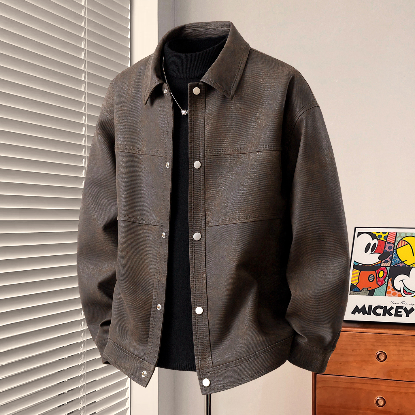 休闲痞帅外套轻奢美式 翻领机车夹克男秋季 高端皮衣 套装 高级感男装