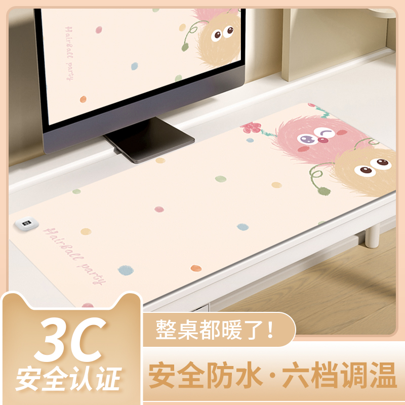 可爱毛球简约加热鼠标垫超大桌面USB保暖学生宿舍桌面垫男女生卡通暖手防水桌垫办公室冬季 笔记本电脑键盘垫