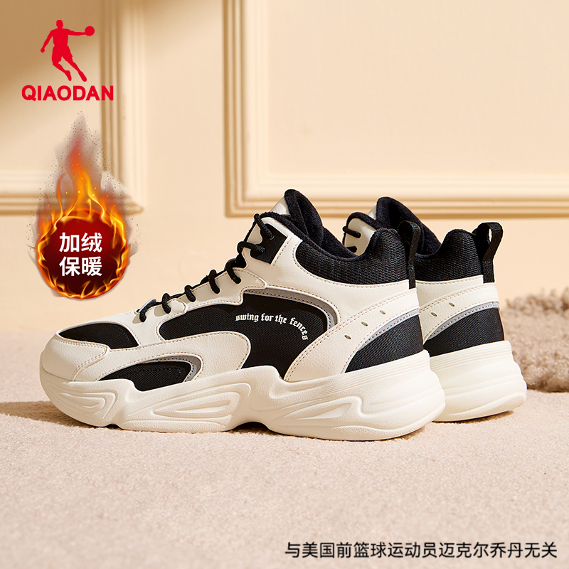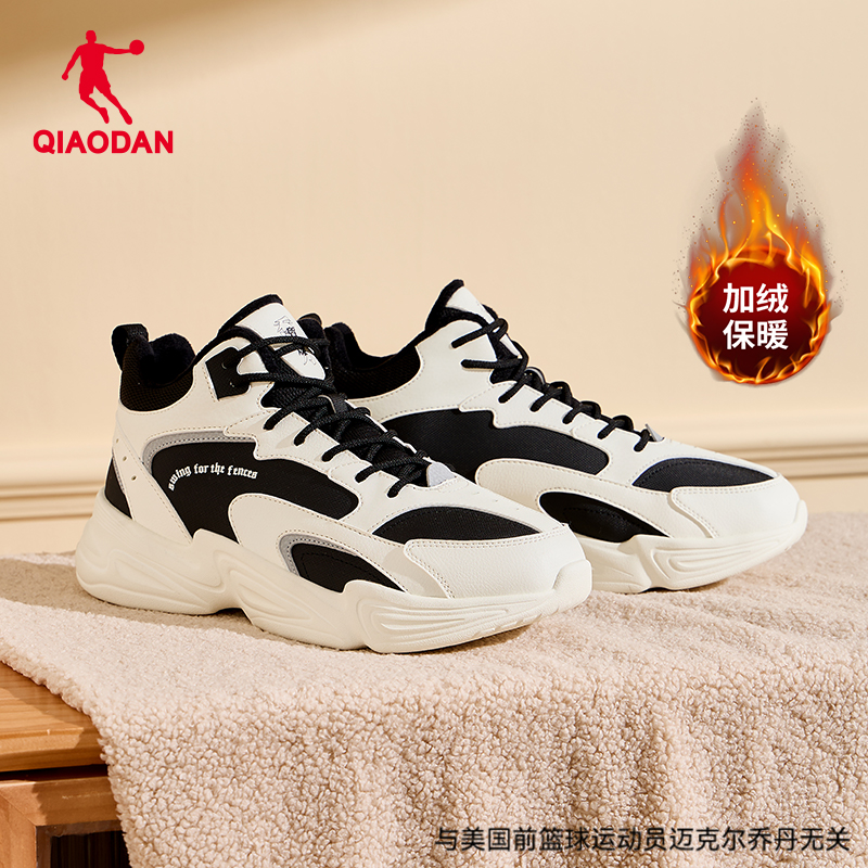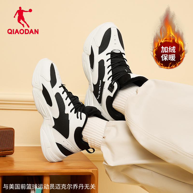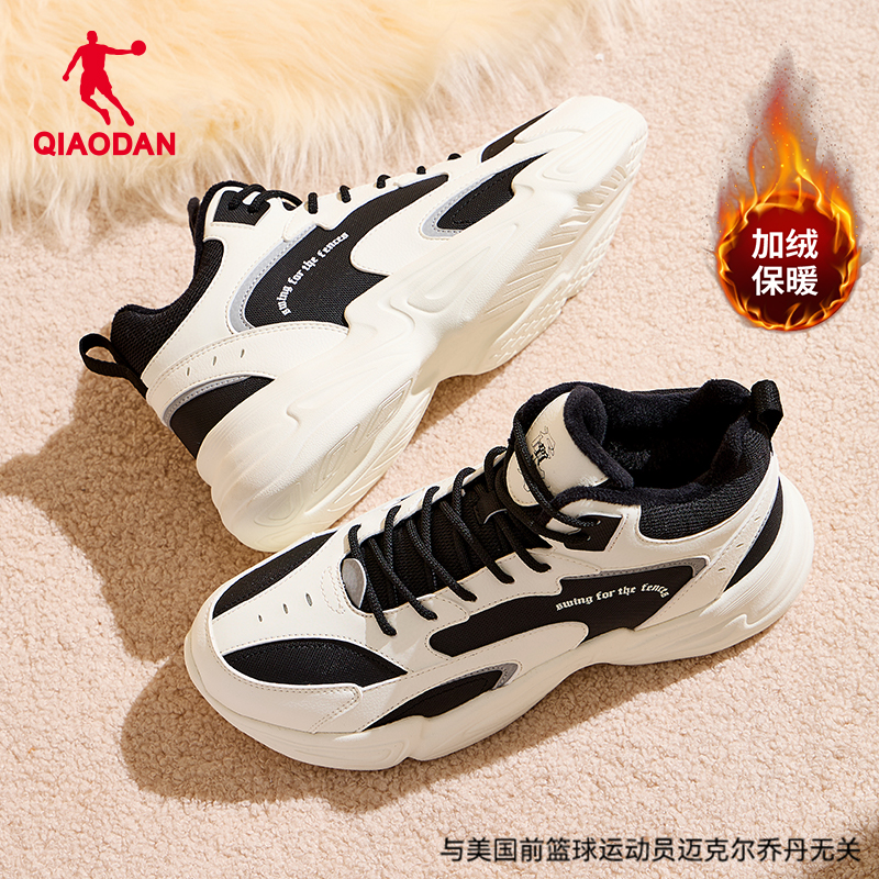 男鞋 黑色运动鞋 男2025秋冬皮面防水高帮加绒保暖大棉鞋 乔丹休闲鞋