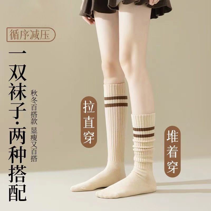 小腿袜子女秋冬纯棉高筒压力显瘦半筒春秋款 长筒袜 长袜中筒袜秋季