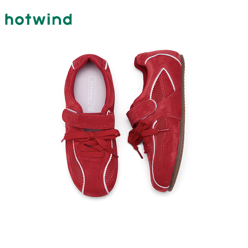 休闲鞋 薄底女鞋 女2025年秋季 芭蕾德训鞋 新款 热风红色运动玛丽珍鞋