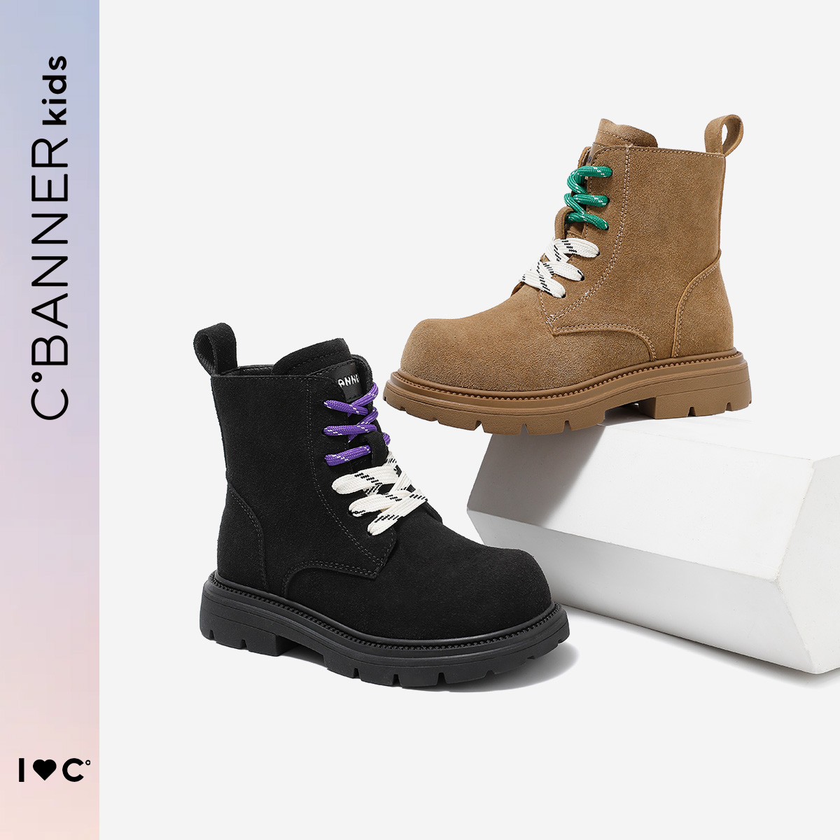 厚底增高短靴真皮靴子女 英伦风秋冬季 红蜻蜓官方正品 马丁靴女新款