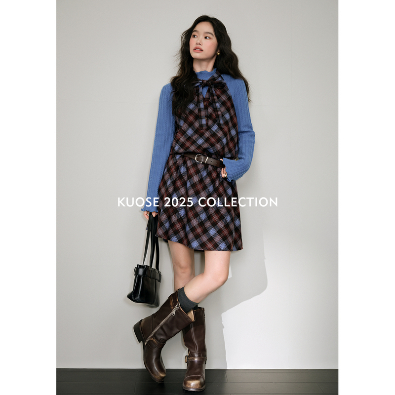 拼色短裙miu系针织裙子 小香风黑色连衣裙女法式 DPLAY2025秋季 新款