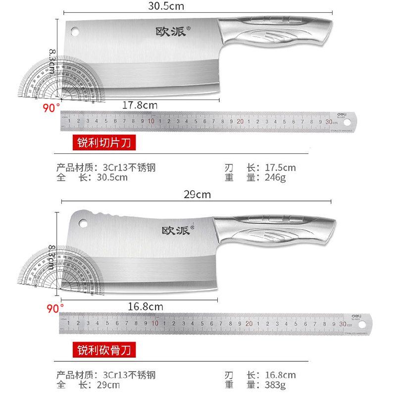 欧派菜刀家用厨师刀专用切片刀砍骨刀厨房刀具套装 切菜切肉免磨刀