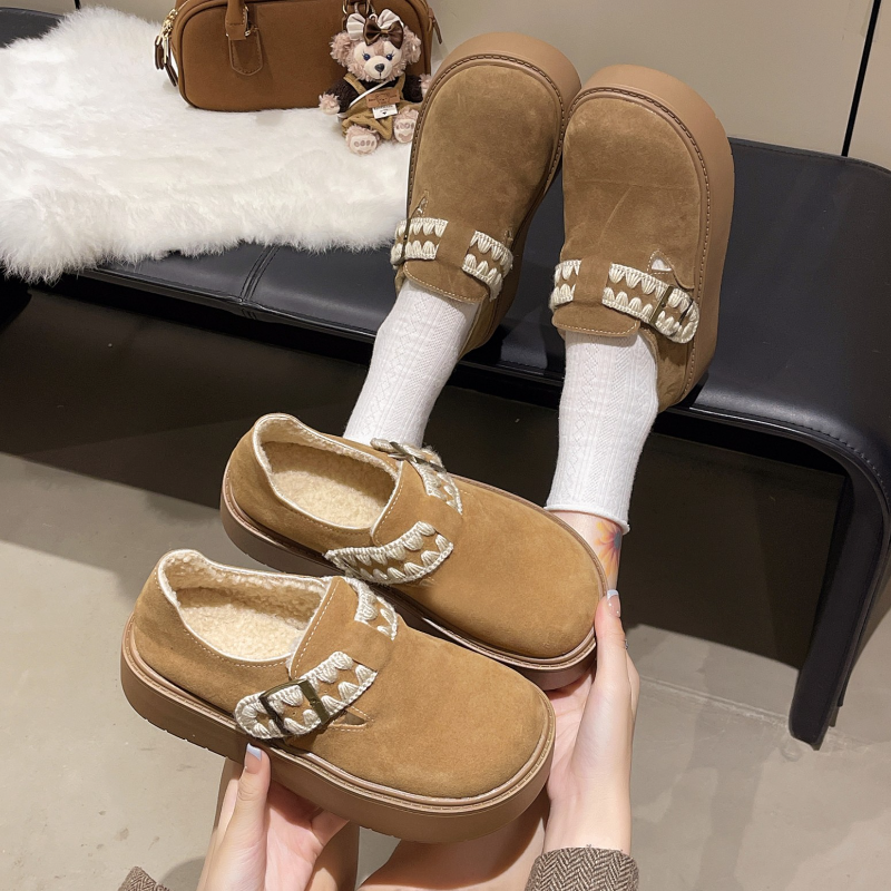 加绒保暖棉鞋 秋冬季 博肯雪地靴 女2025新款 厚底松糕增高全包勃肯鞋