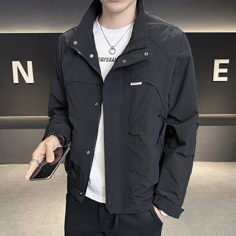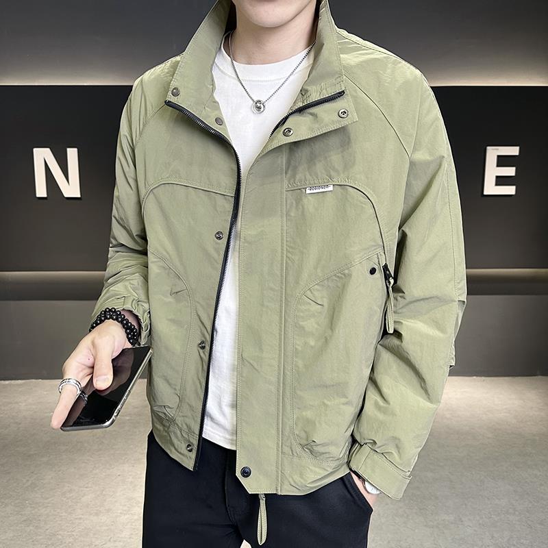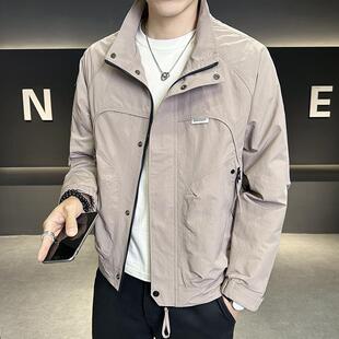 上衣服潮牌薄款 秋冬新款 立领夹克外套工装 男士 烟粉色1007z 2025装