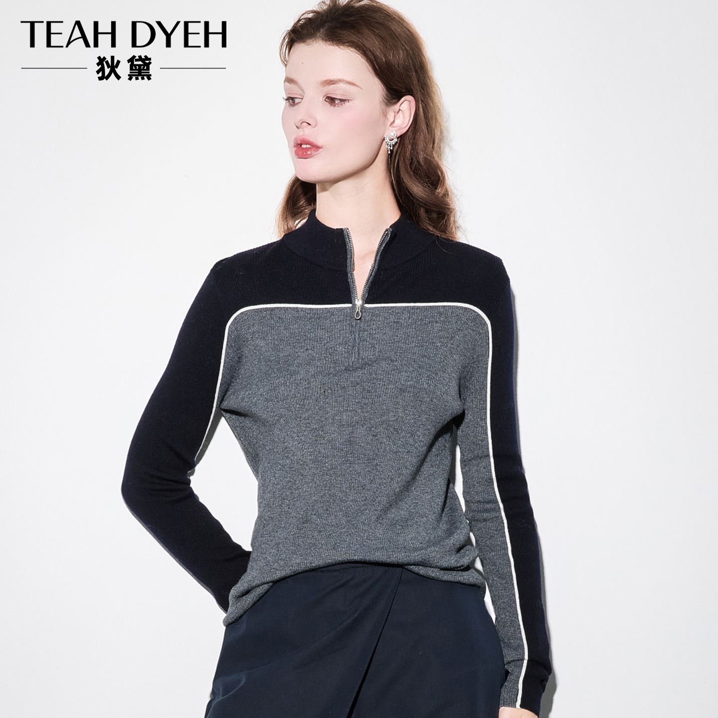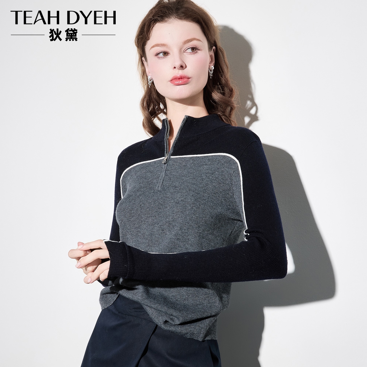 毛衣女 收腰打底针织衫 淡人高知老钱风穿搭 羊毛拉链立领撞色修身
