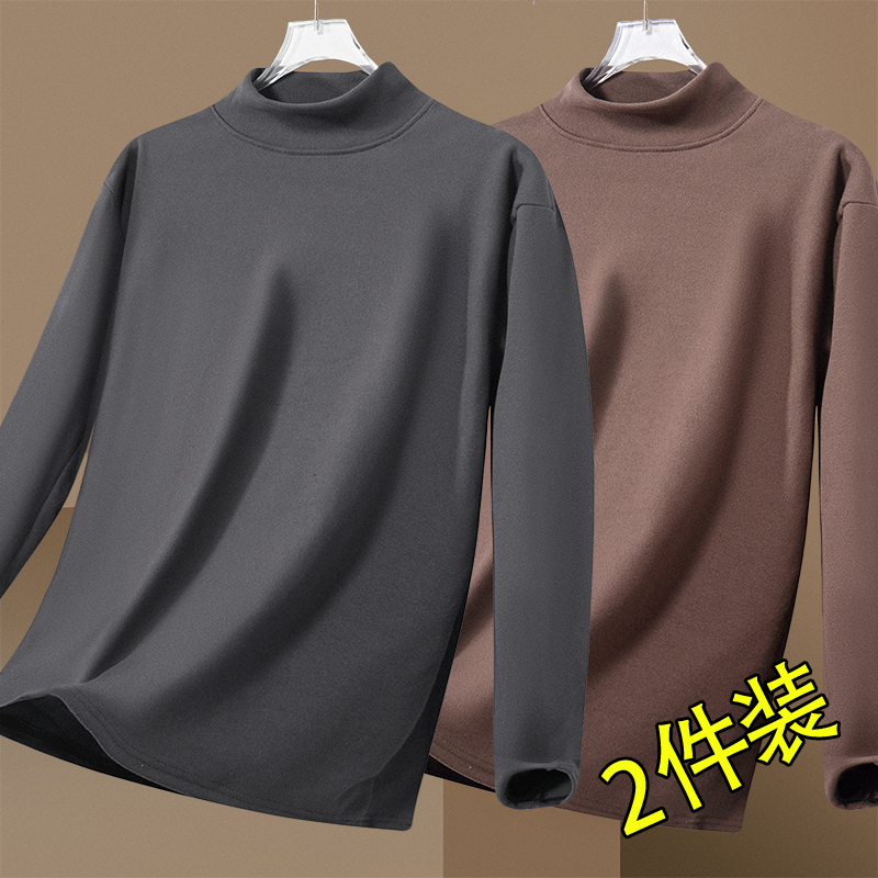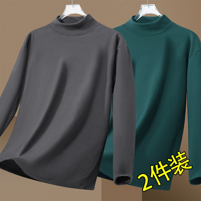 双面绒打底衫 t恤上衣 男秋冬双面德绒半高领保暖内衣体恤内搭长袖