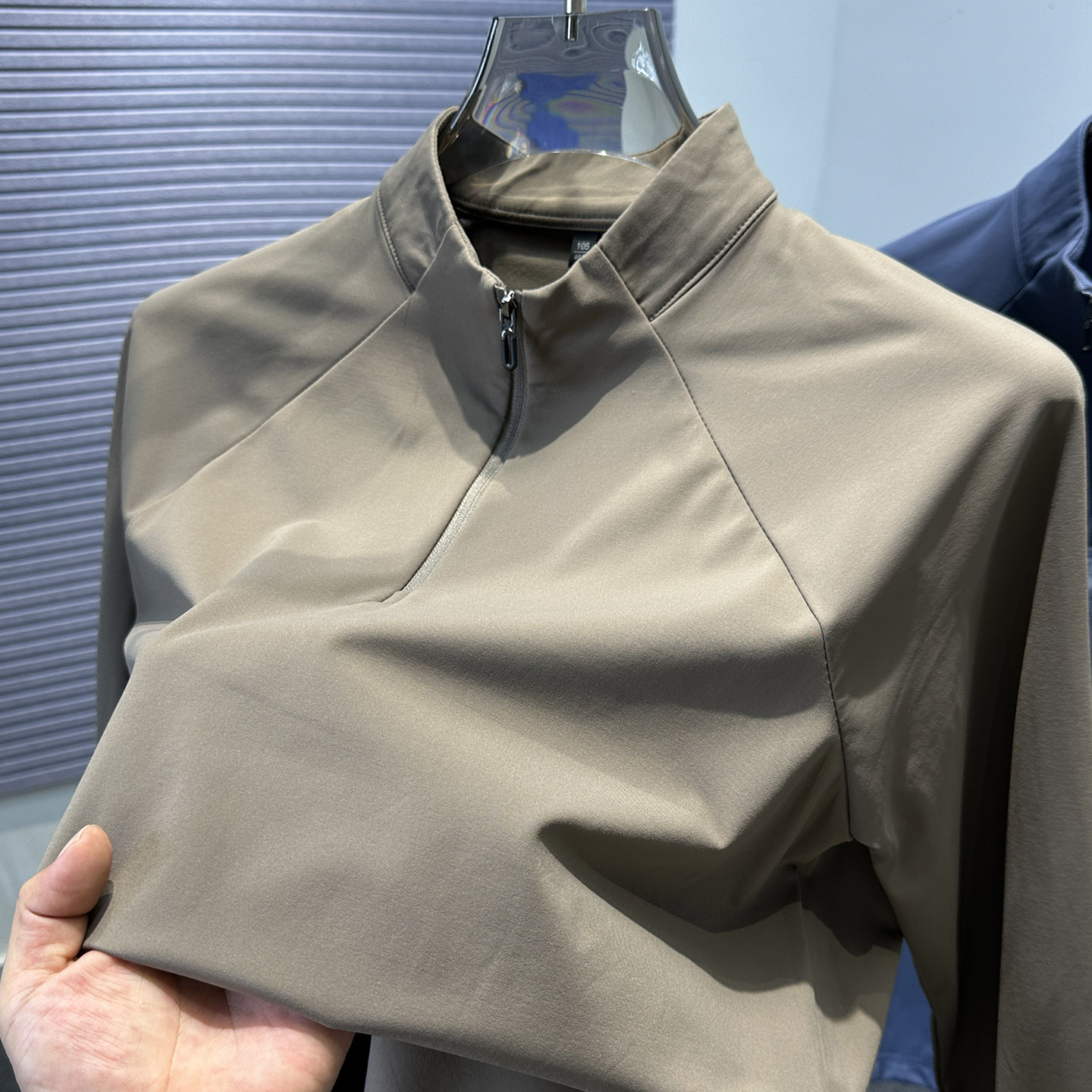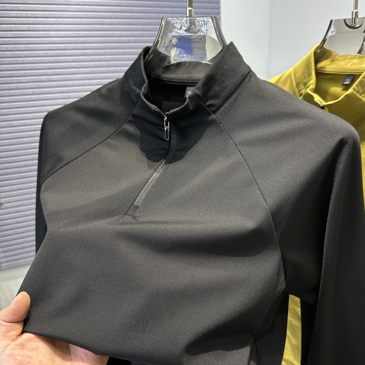 运动休闲打底衫 男士 潮 秋冬季 内里薄绒拉链卫衣男半高领t恤男长袖