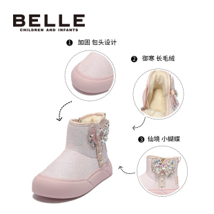 新款 百丽复古高帮毛毛勃肯棉鞋 加绒加绒雪地靴E6F1DD 双11预售