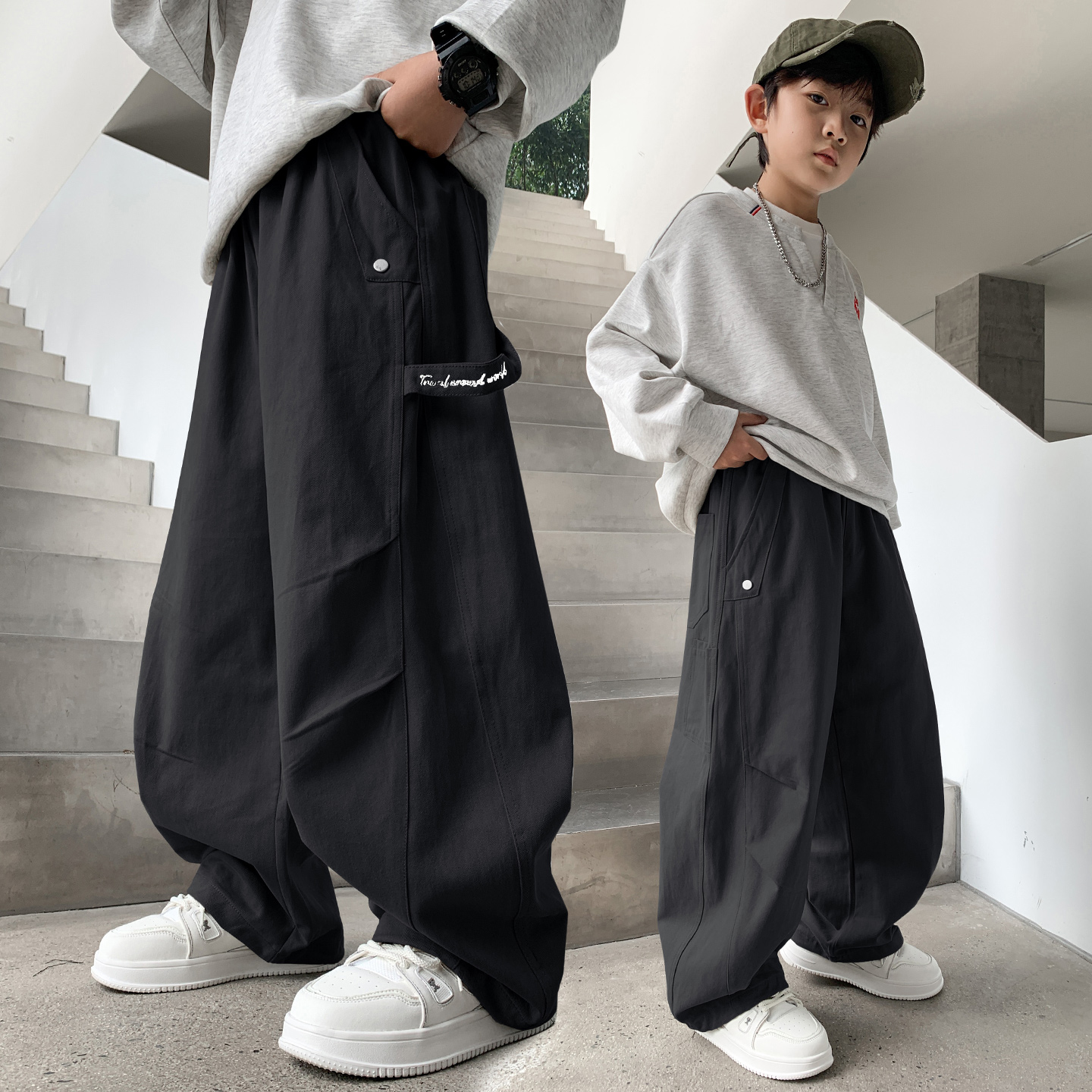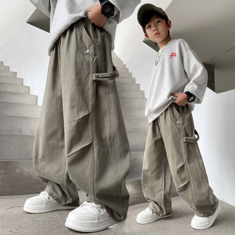 男童工装 跳爵士街舞中大童运动裤 伞兵裤 2025新款 卡其色 秋季 美式