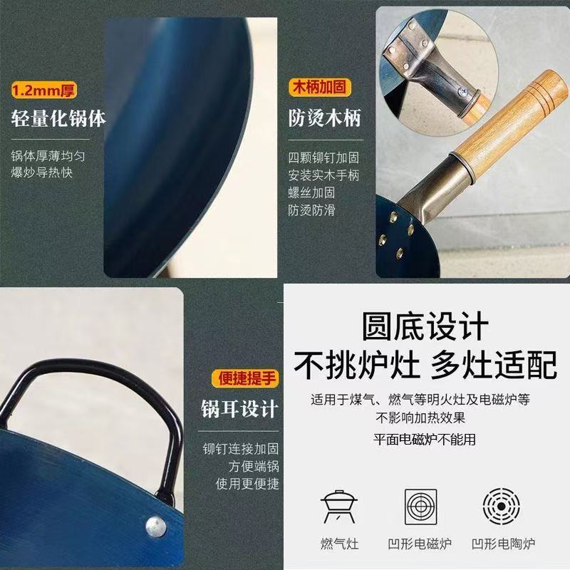 章丘炒菜锅传统铁锅官方旗舰老式 炒锅家用不粘锅无涂层燃气灶适用