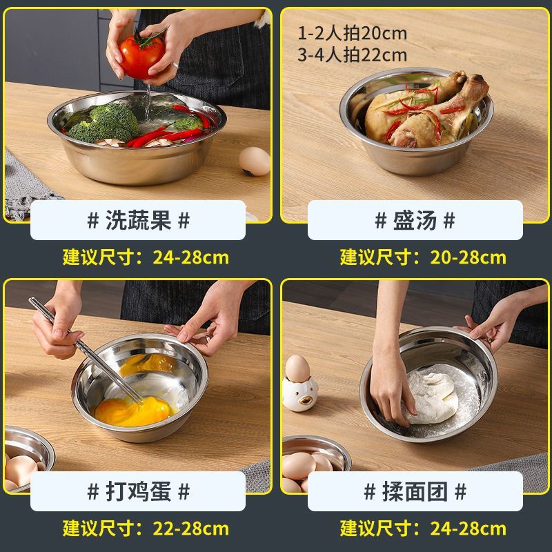 食品级不锈钢盆加厚汤盆面盆家用厨房打蛋和面盆洗菜烘焙多用面盆