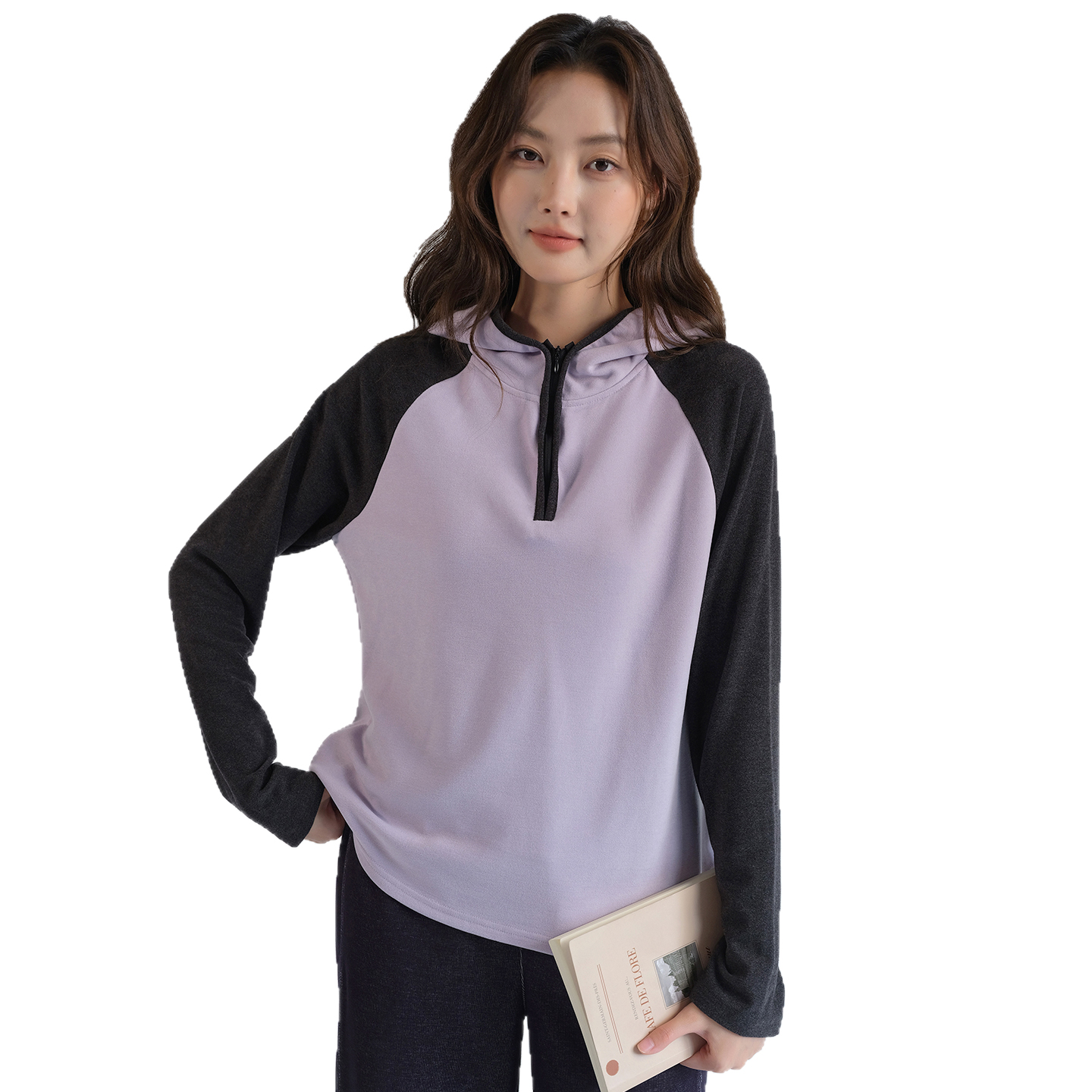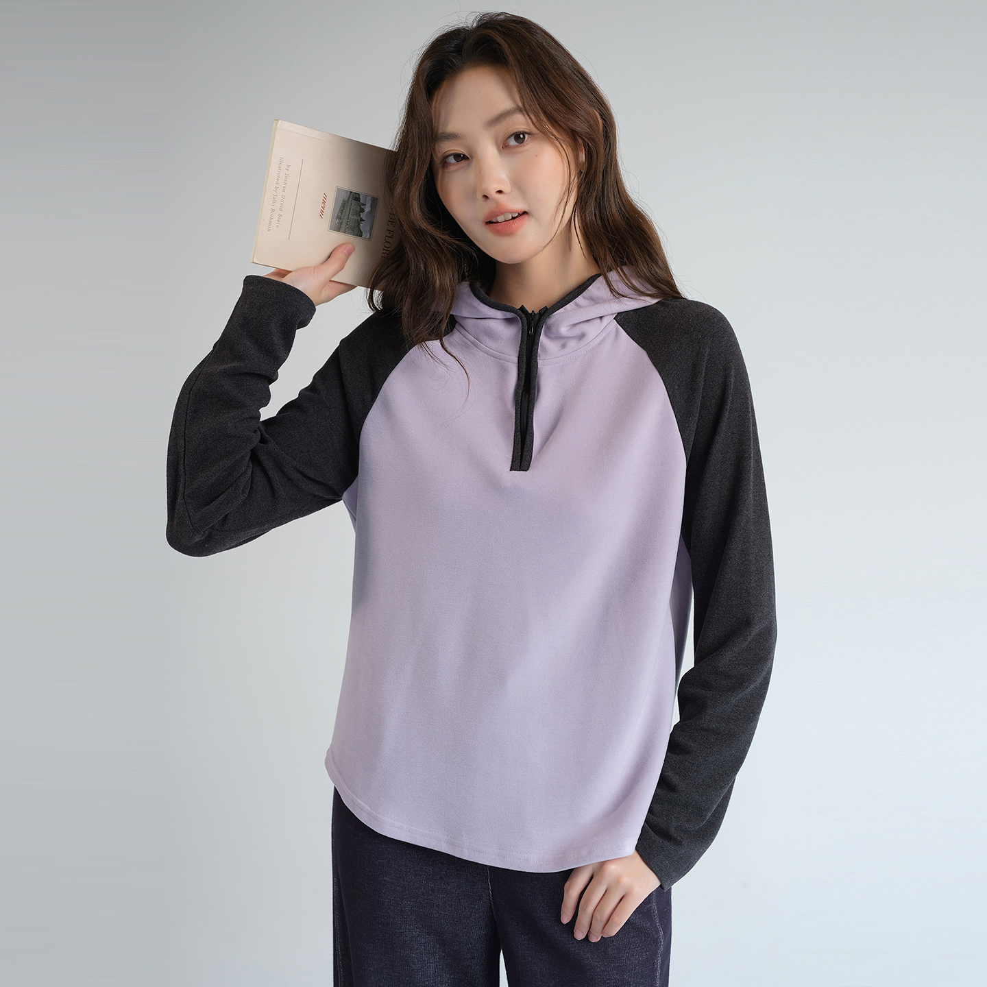 双面绒插肩袖 新款 卫衣外套 2025秋装 半拉链连帽上衣 蓝若水大码