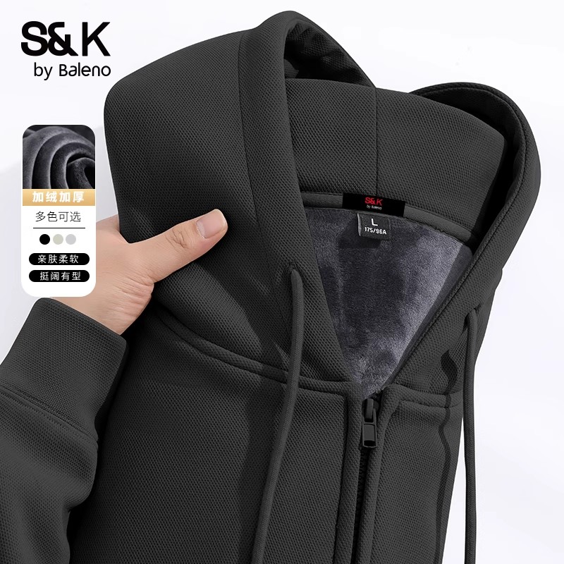 加绒保暖外套男款 冬季 加厚青少年夹克LF 卫衣男士 班尼路SK系列开衫
