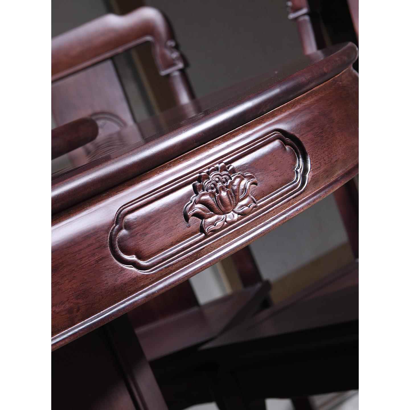 花梨木餐桌椅组合红木家具餐桌圆形新中式 雕花古典家用饭桌带转盘
